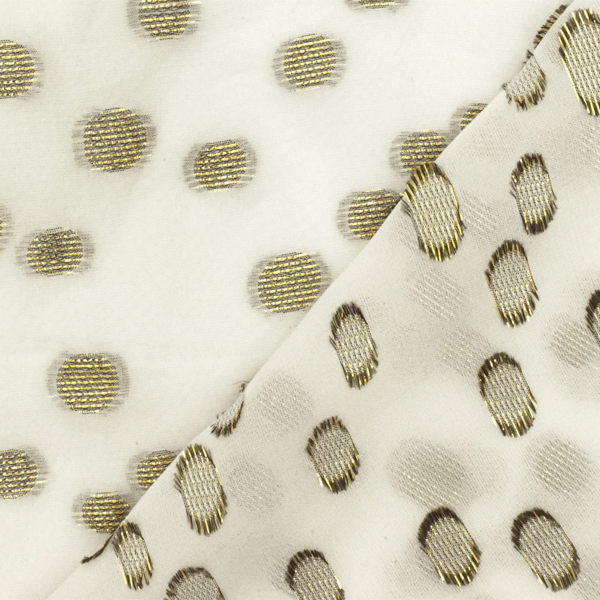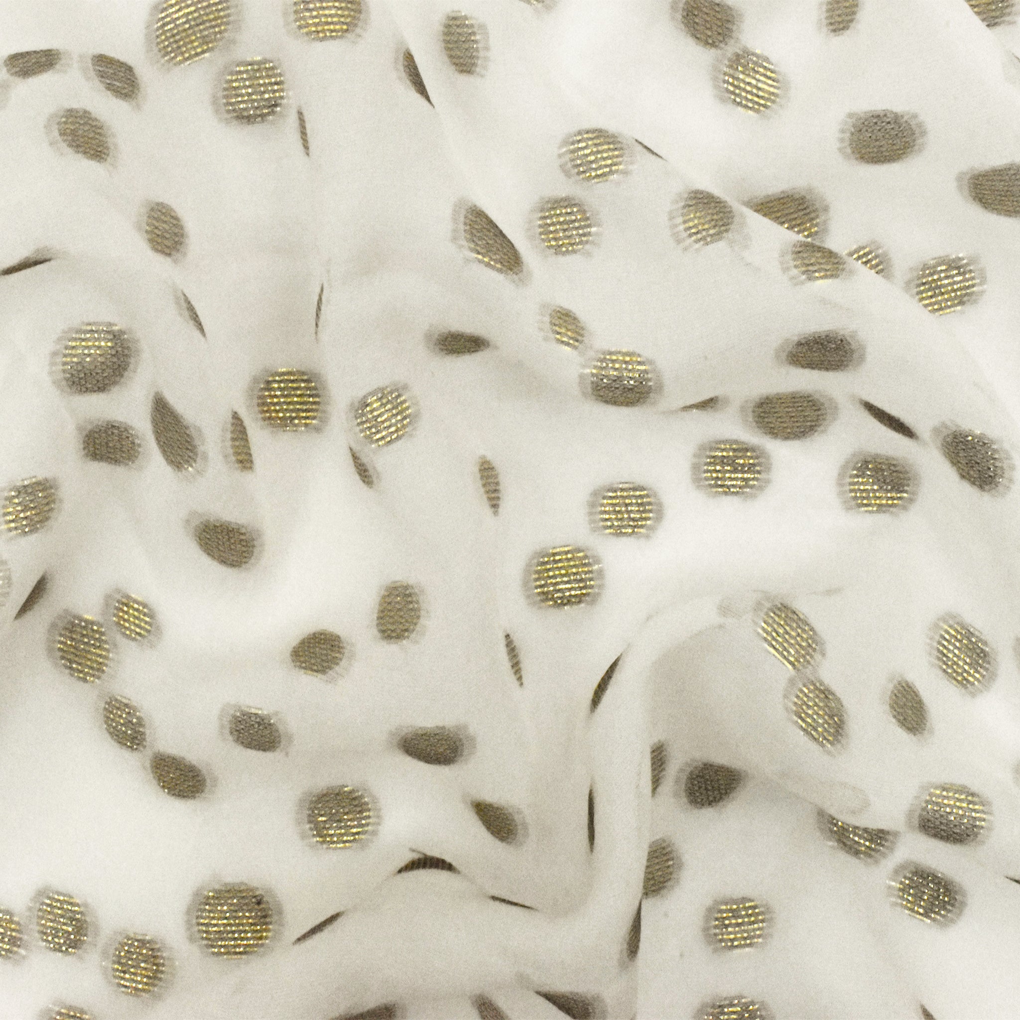 Ivory-Gold Silk Blend Metallic Dot Clip Spot Chiffon Fabric