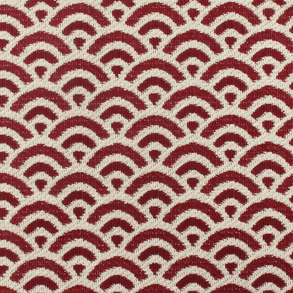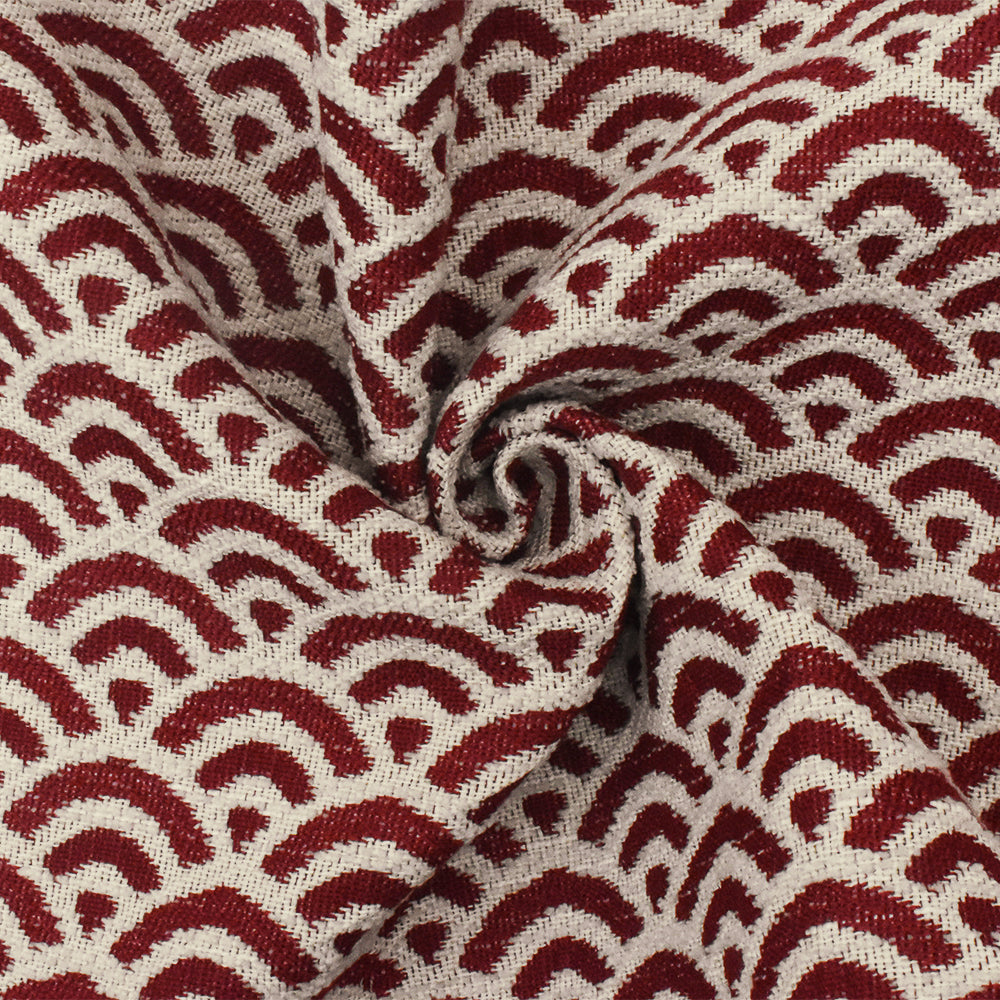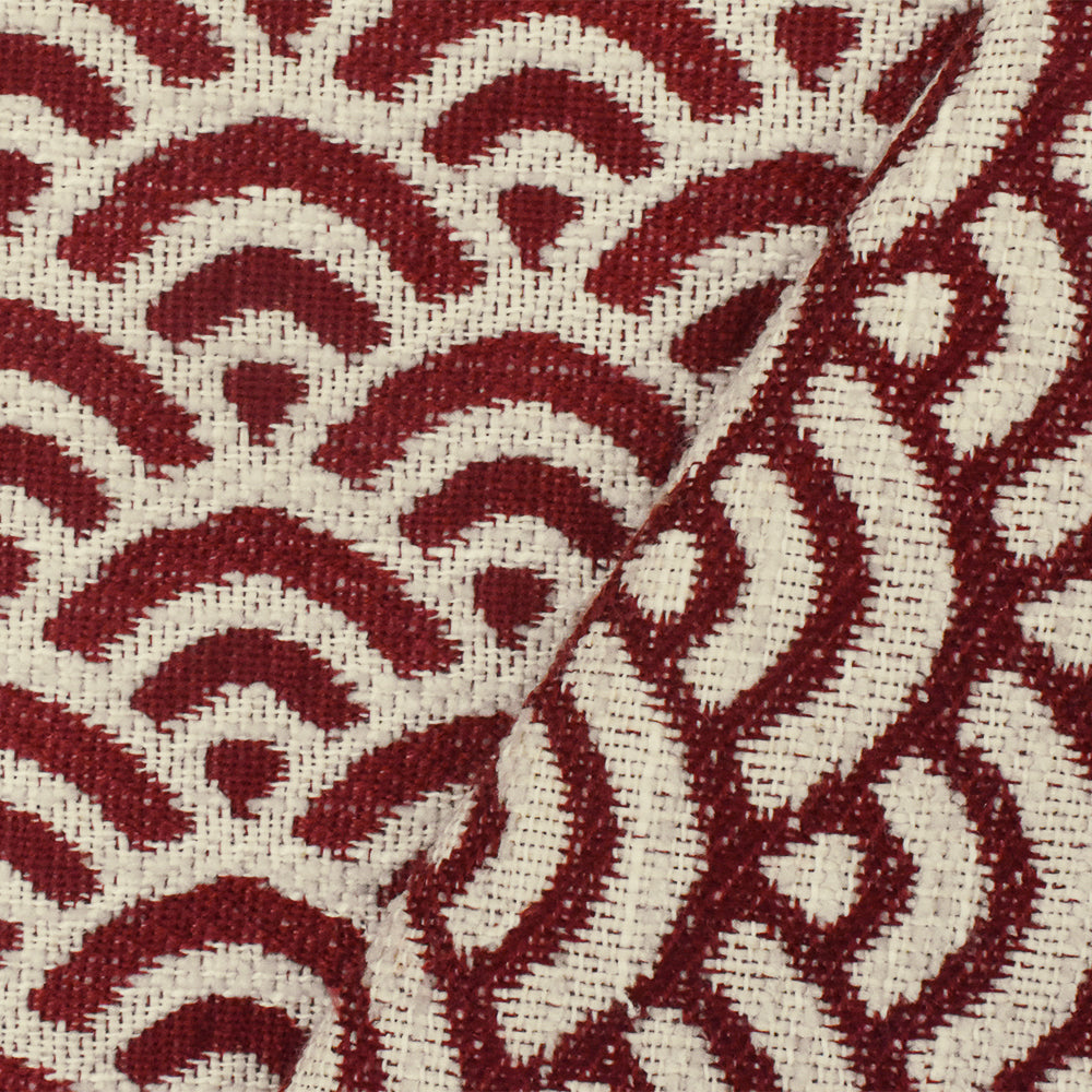 Red-Ivory Scallop Scale Poly Acrylic Chenille Damask Woven Home Decorating Fabric