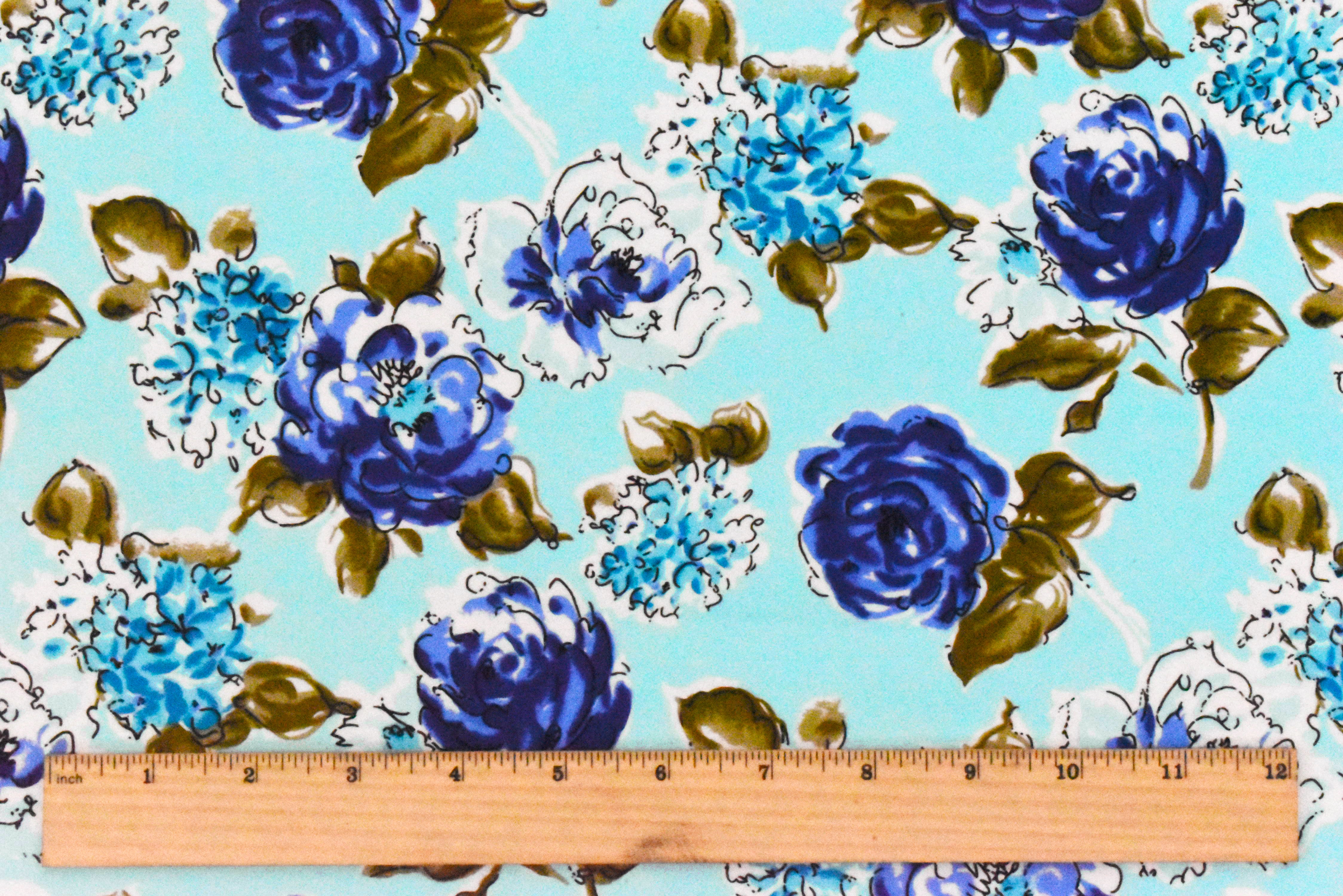 Bell Blue-Multi Floral Printed Cotton Poplin Woven Fabric