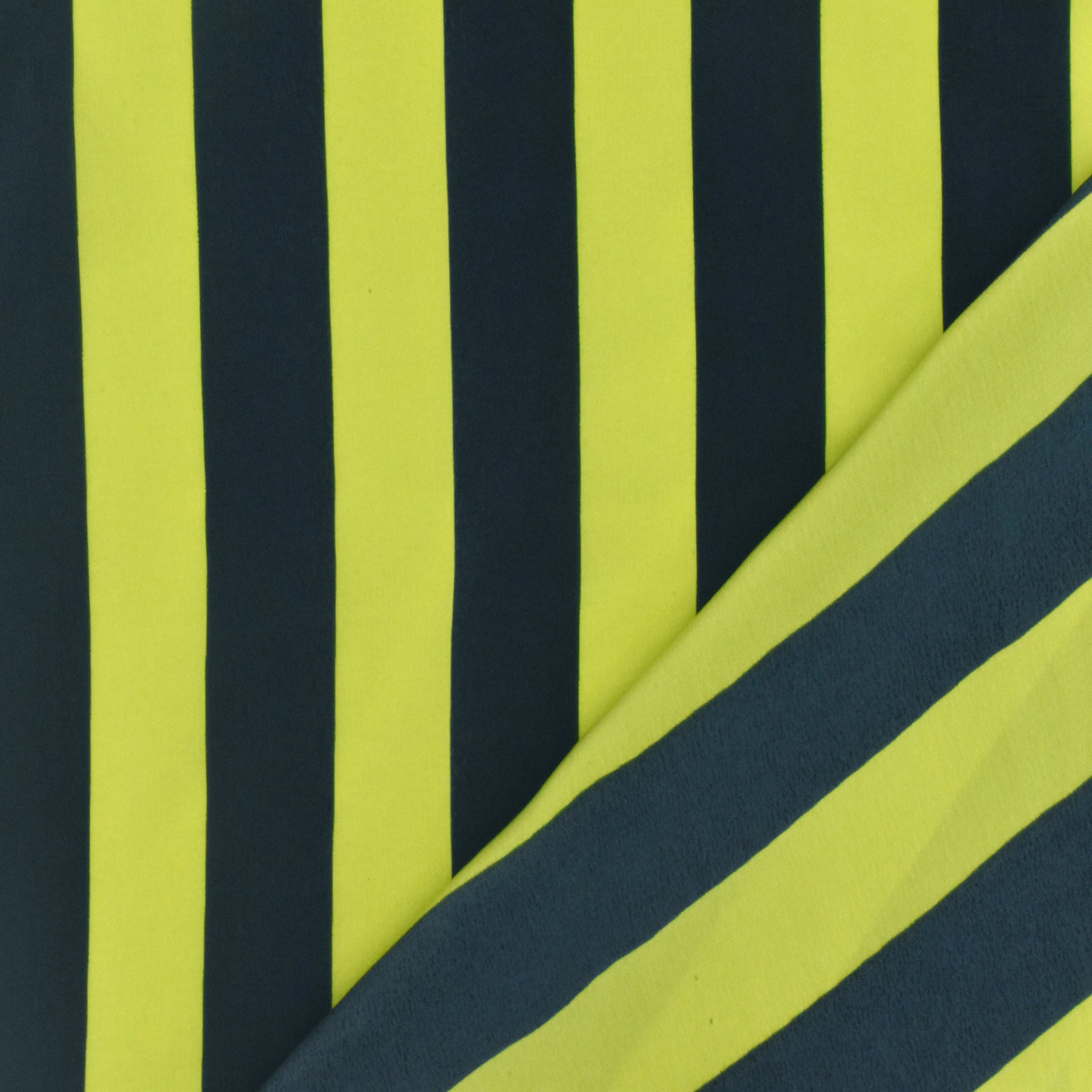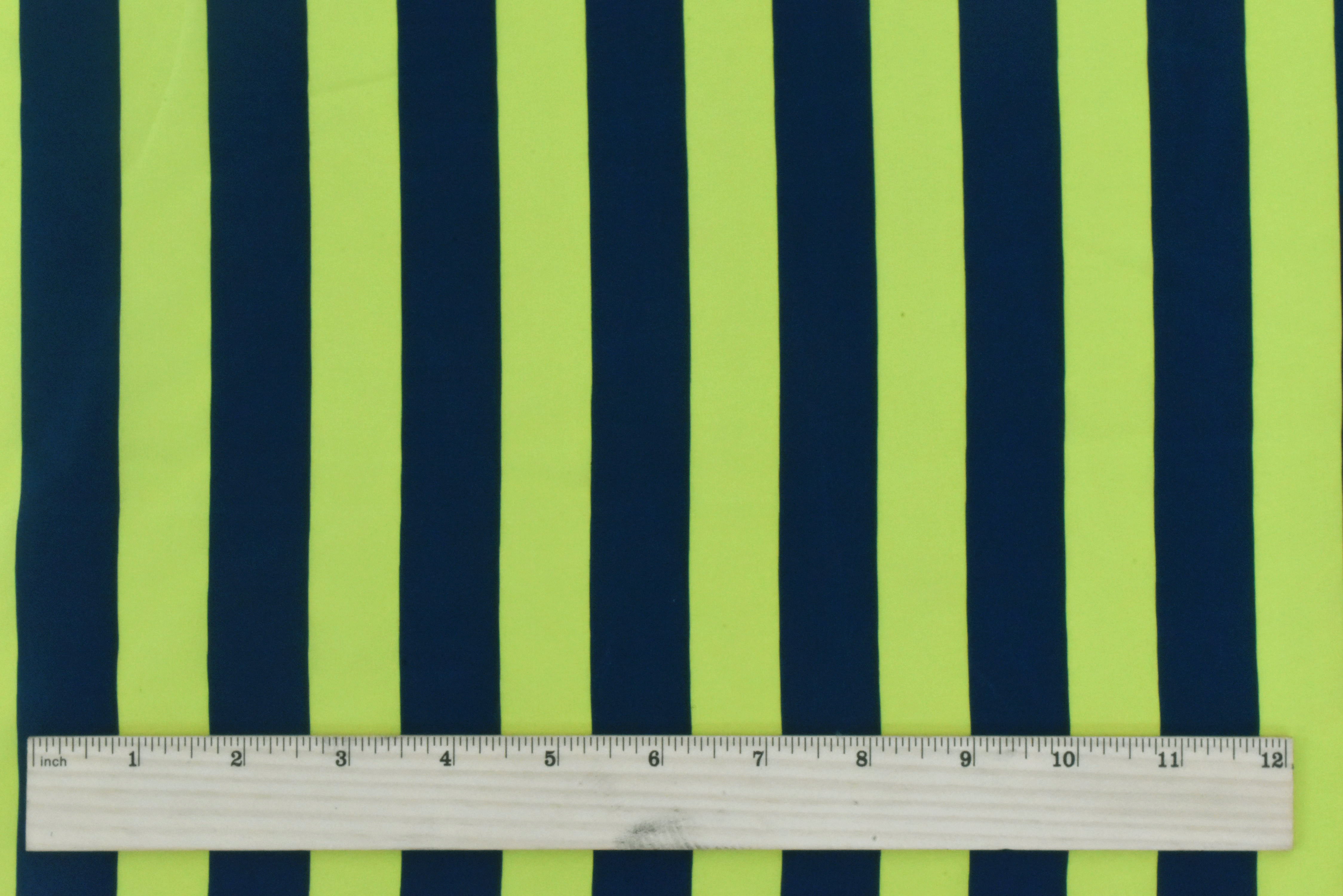 Bright Yellow-Navy Stripe Printed Silk Faille Woven Fabric