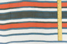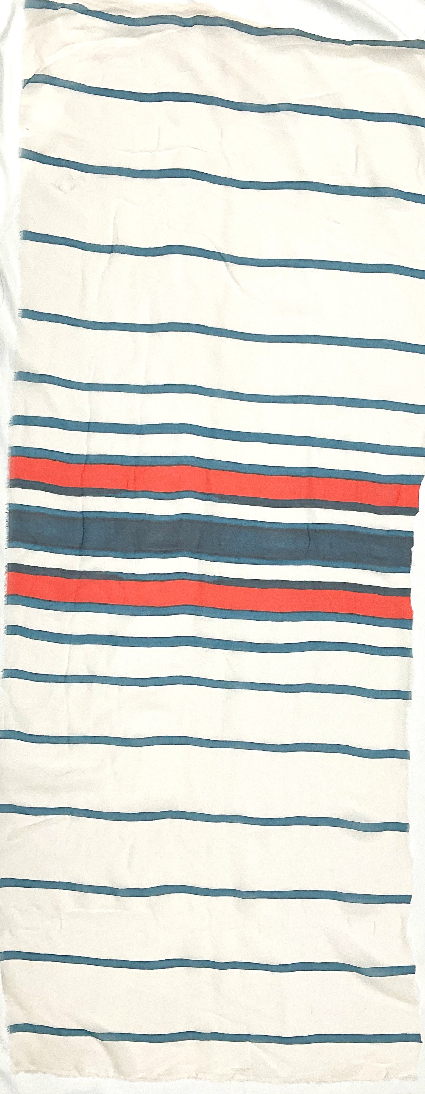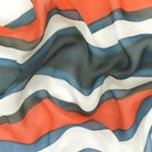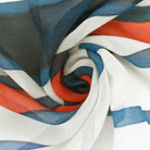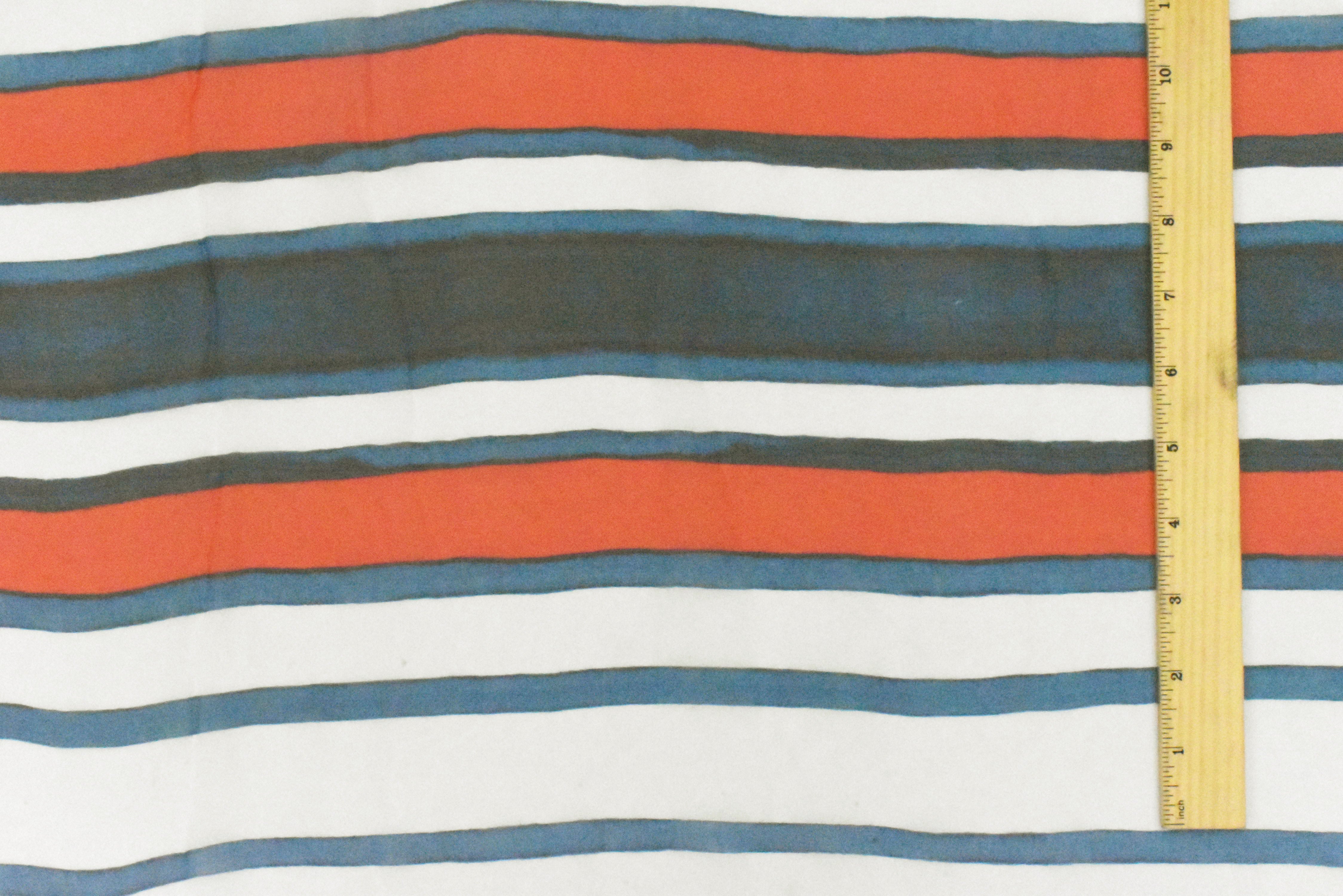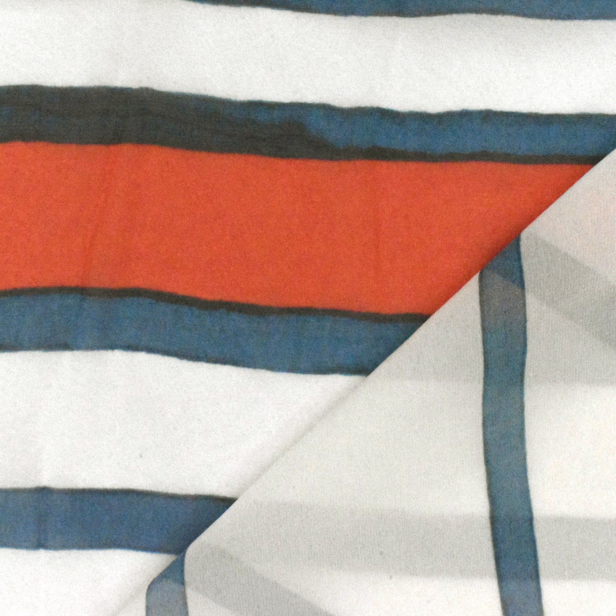 Deep Dusk Teal-Red Ivory Stripe Printed Silk Chiffon Fabric