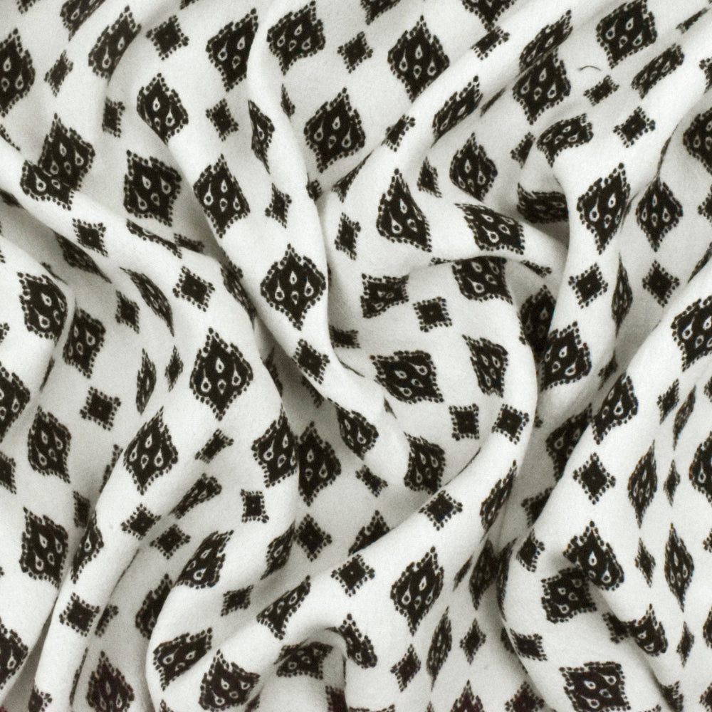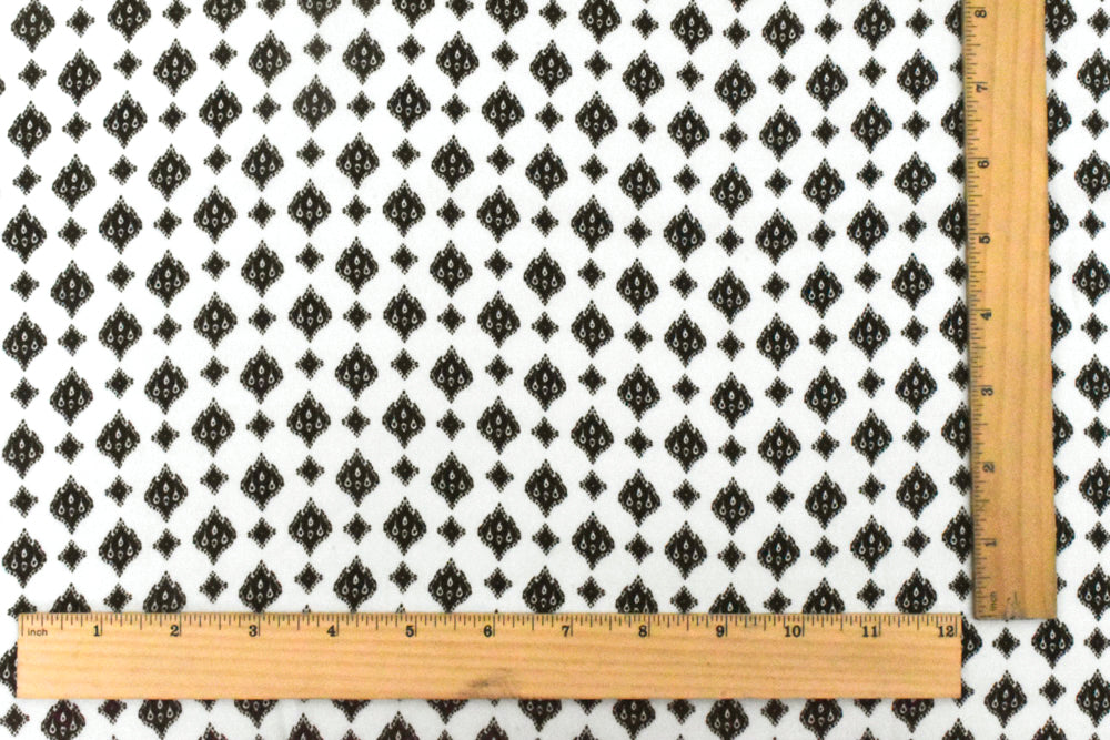 Ivory-Black Ogee Diamond Printed Rayon Crepe Faille Woven Fabric