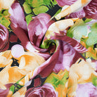 Maroon-Yellow-Multi Floral Printed Rayon Crepe Faille Woven Fabric