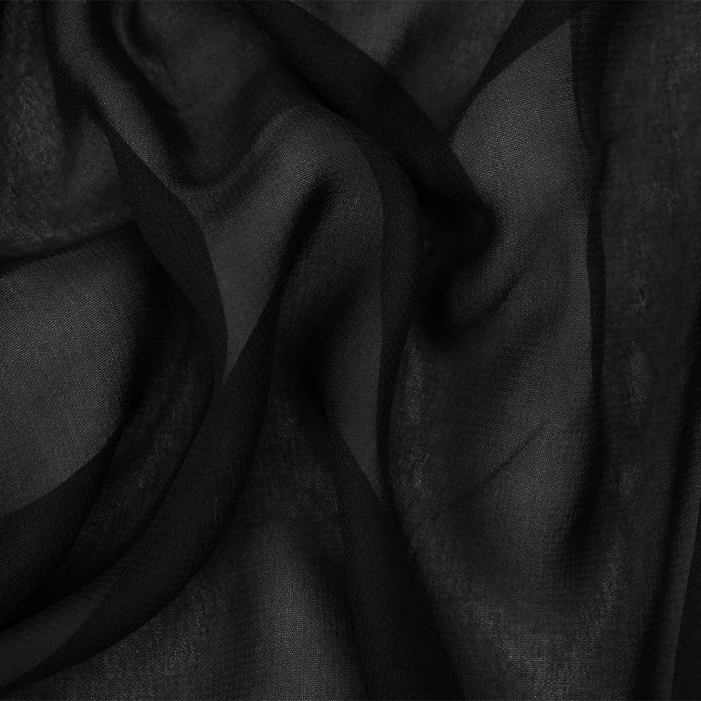 Classic Black Floral Embroidered Rayon Chiffon Woven Fabric