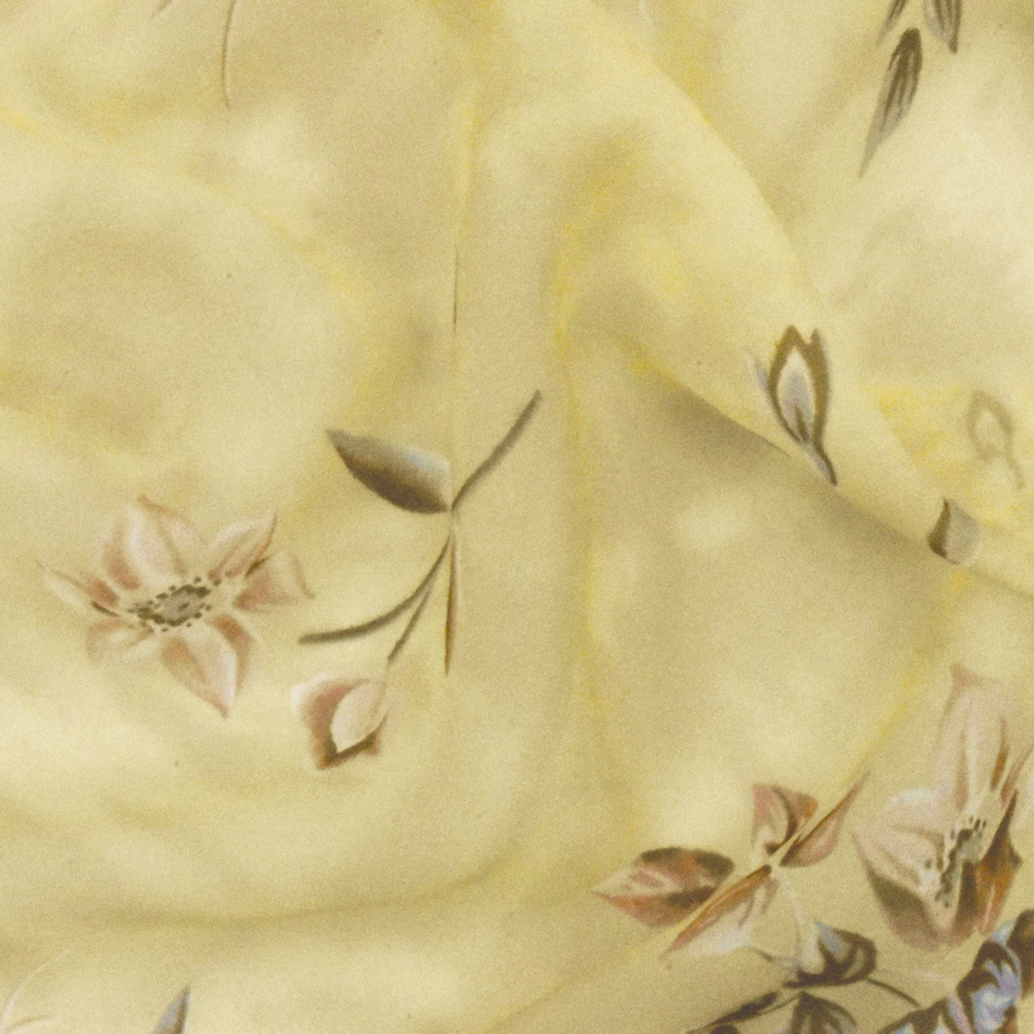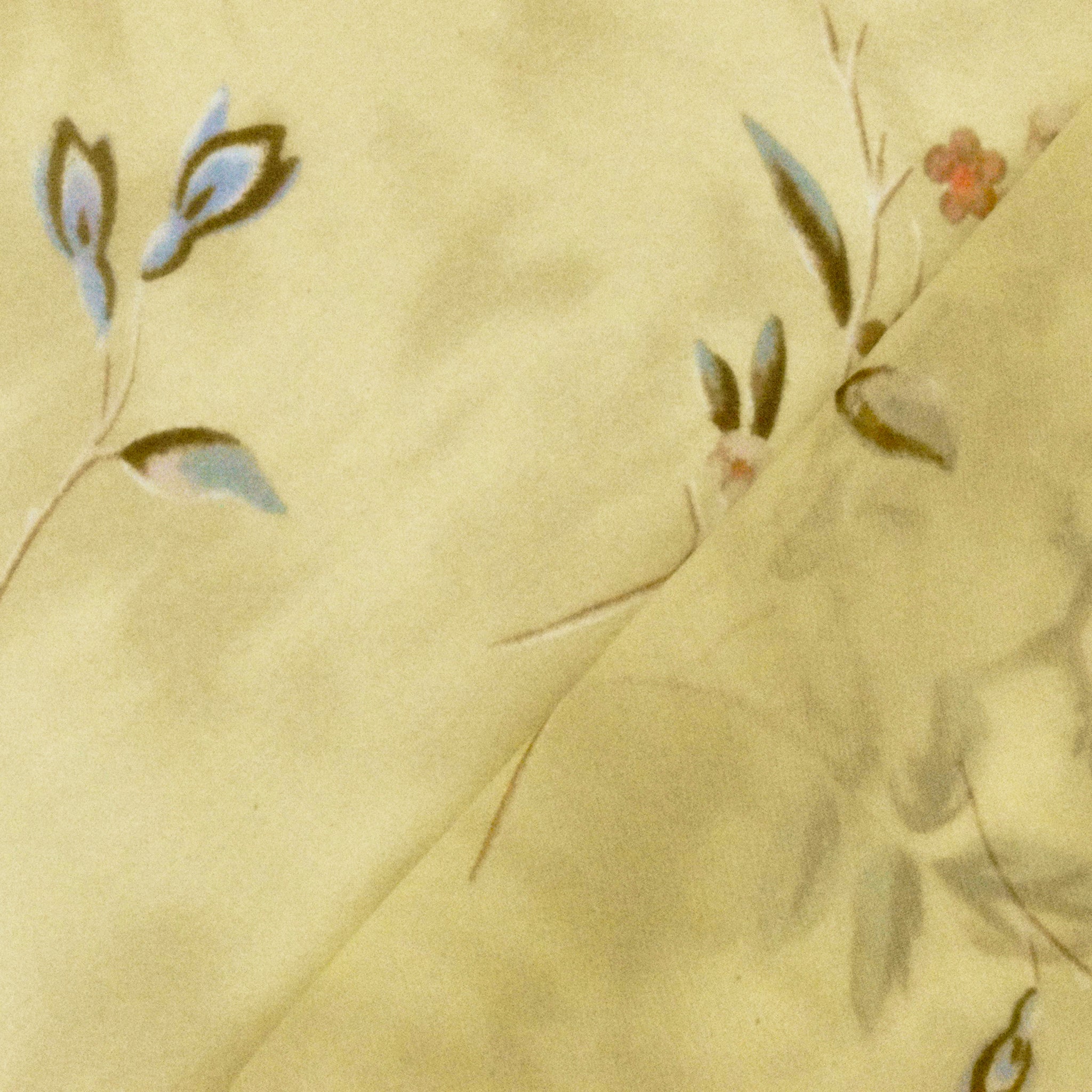 Antique Yellow-Multi Floral Printed Silk Chiffon Fabric