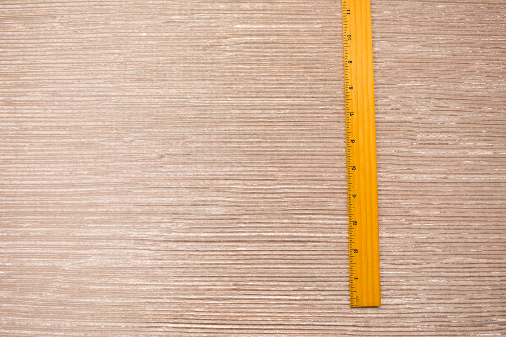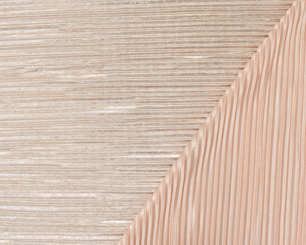 Silver-Beige Polyester Blend Stretch Foil Printed Pleated Knit Fabric
