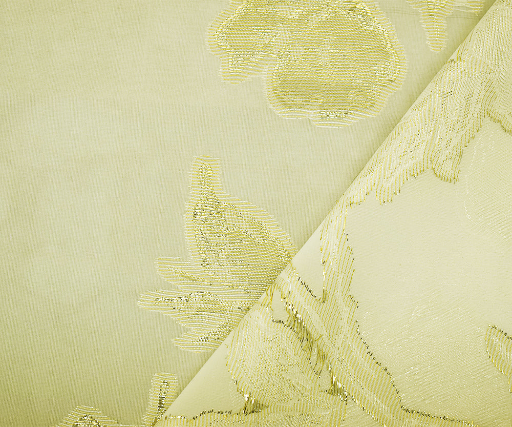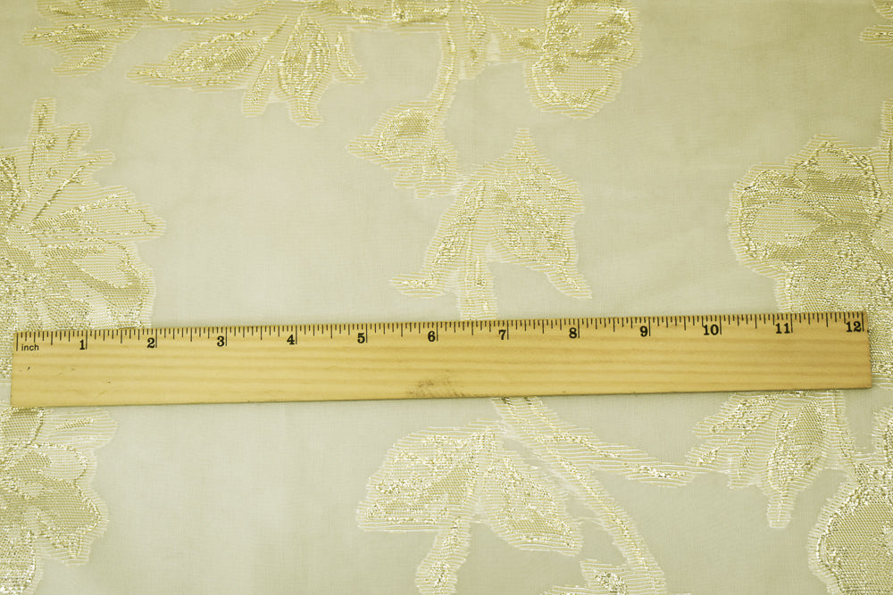 Yellow-Silver-Gold Nylon Blend Metallic Floral Organza Woven Fabric