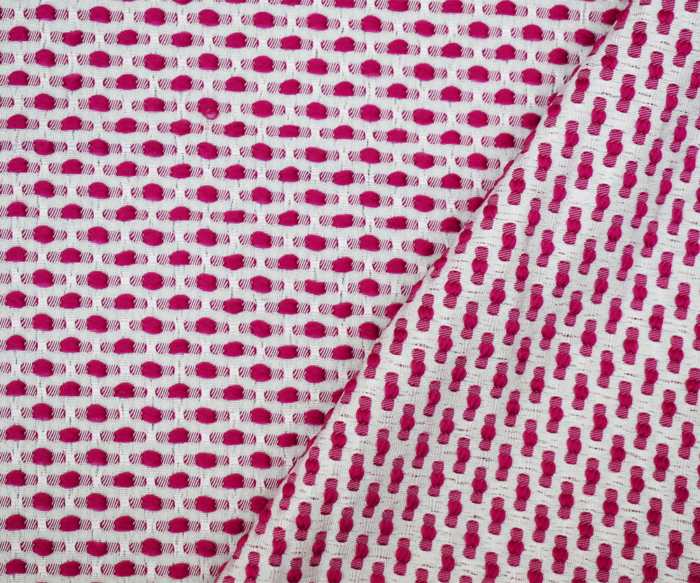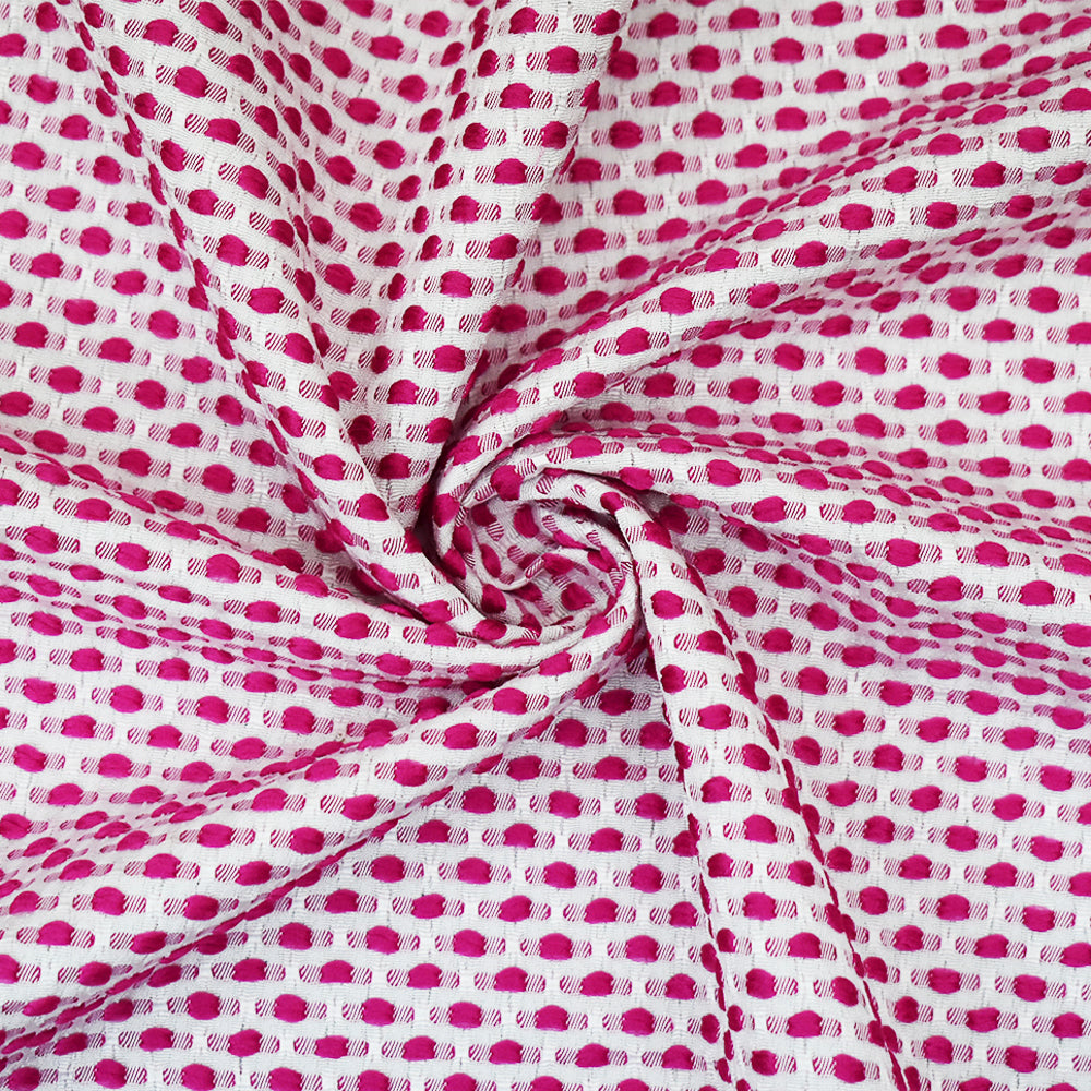 Fuchsia Pink-White Poly-Lycra Texture Dobby Jacquard Woven Fabric