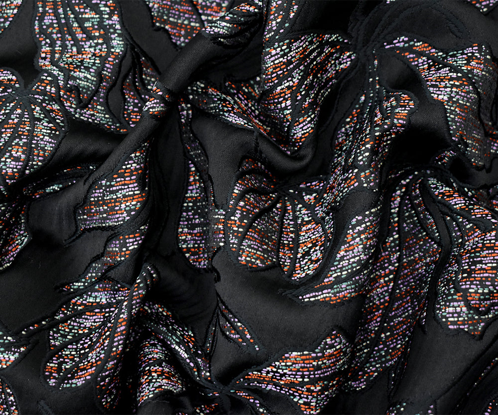 Black-Purple-Multi Polyester Leaves Jacquard Woven Fabric