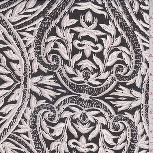 Black/Dusty Pink Vine Medallion Silk Chiffon Fabric