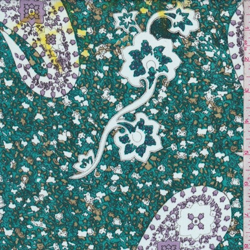 Green/Multi Paisley Garden Printed Crepe Faille Fabric
