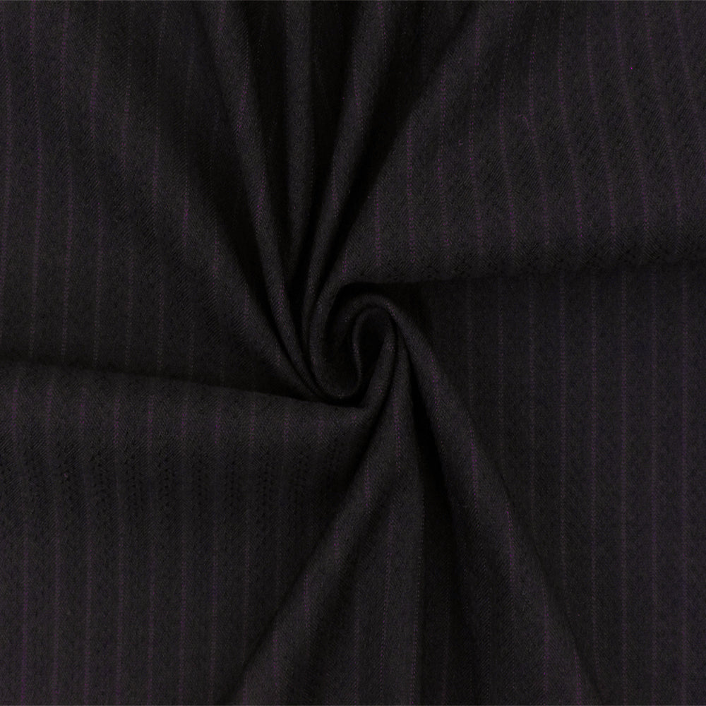 Nature Black-Purple Stripe Dobby Wool Polyester Woven Suiting Fabric