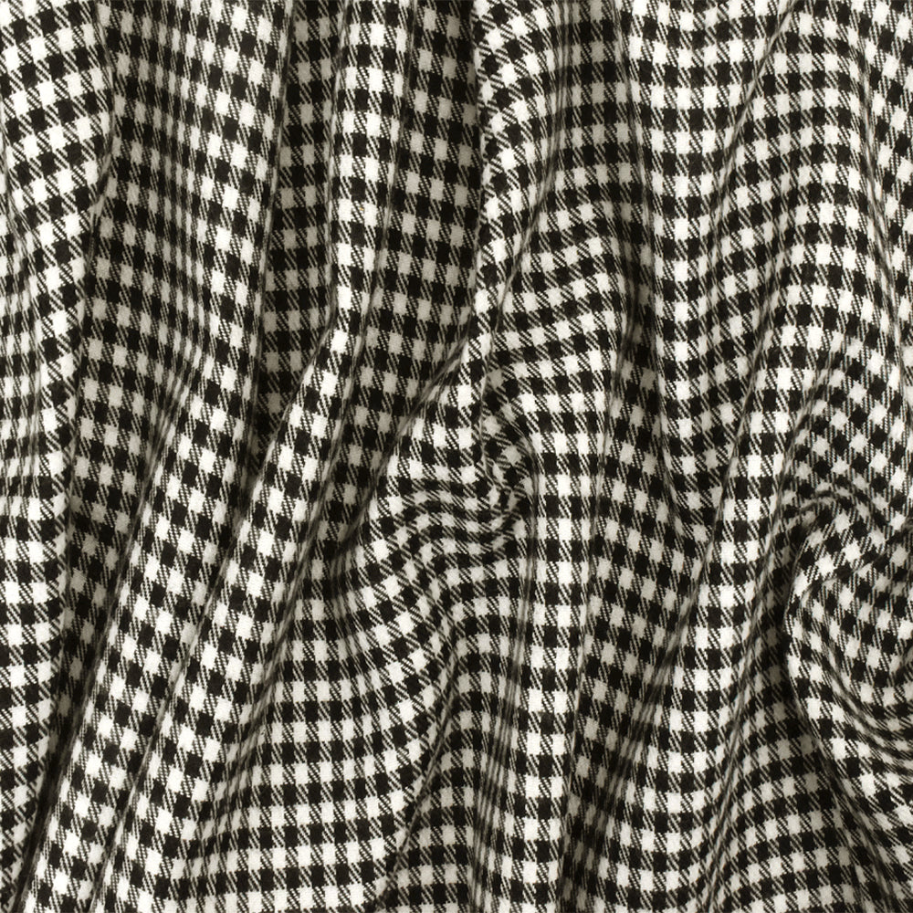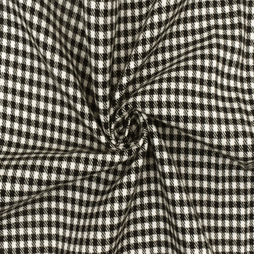Snow White-Black Gingham Poly-Cotton Twill Woven Fabric