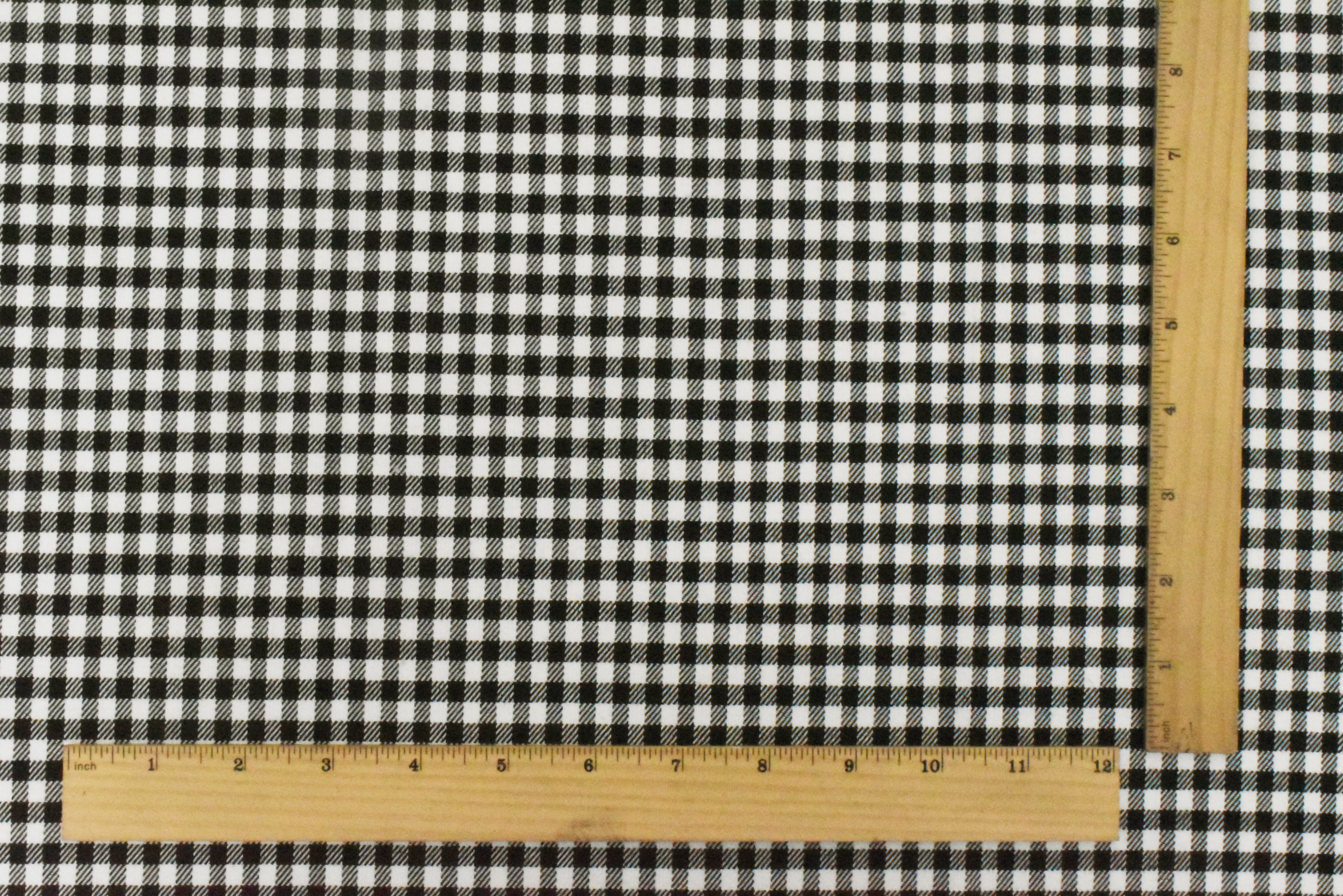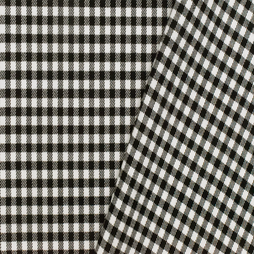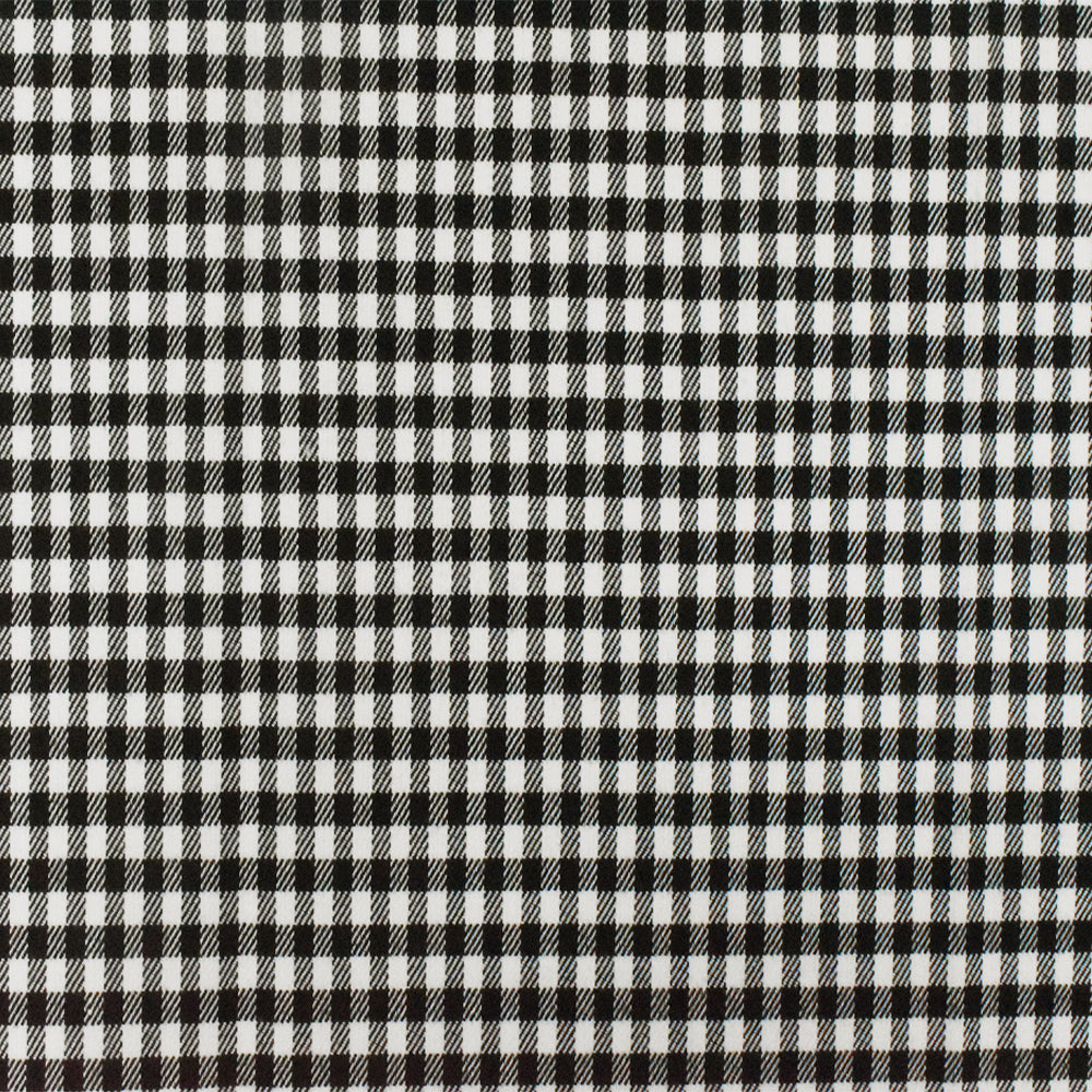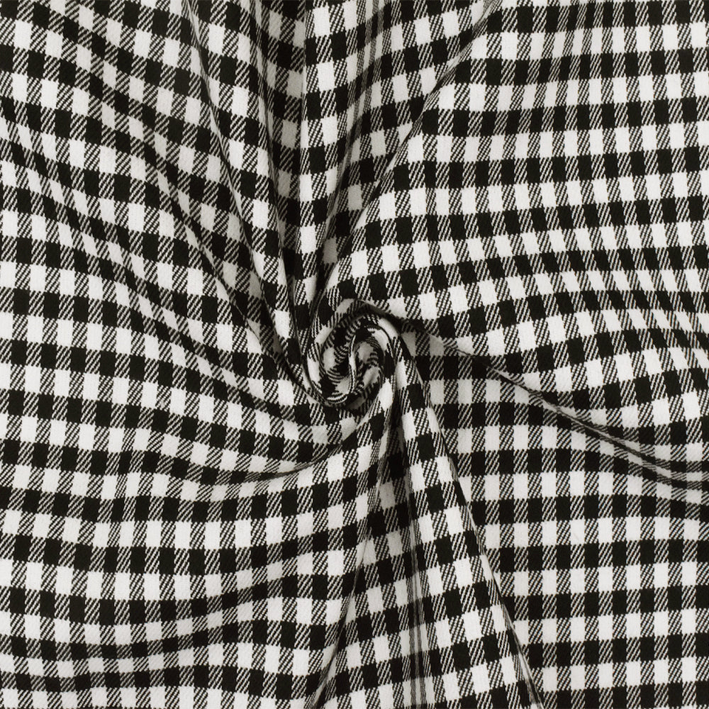 Black-White Gingham Poly-Cotton Twill Woven Fabric