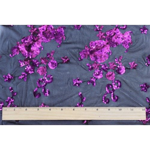 Black/Pink/Purple Floral Sequined Stretch Mesh fabric