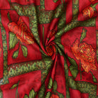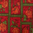 Cherry Red-Green-Multi Floral Frame Printed Cotton Sateen Fabric
