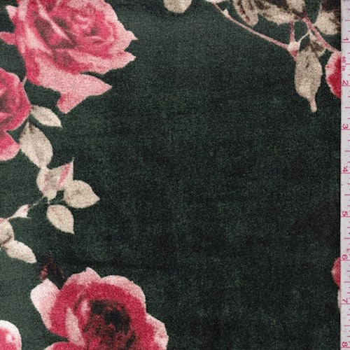 Ever Green/Multi Floral Printed Stretch Velvet Knit Fabric