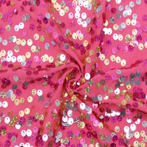 Sour Pink/Gold/Multi Confetti Sequined Knit Fabric