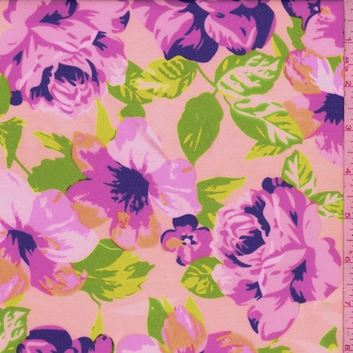 Pink/Aqua/Lime Tropical Floral Scuba Knit Fabric