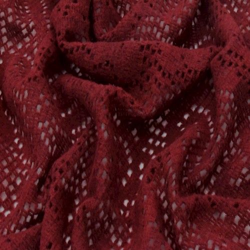 Berry Red Wool Blend Crochet Floral Sweater Knit Fabric