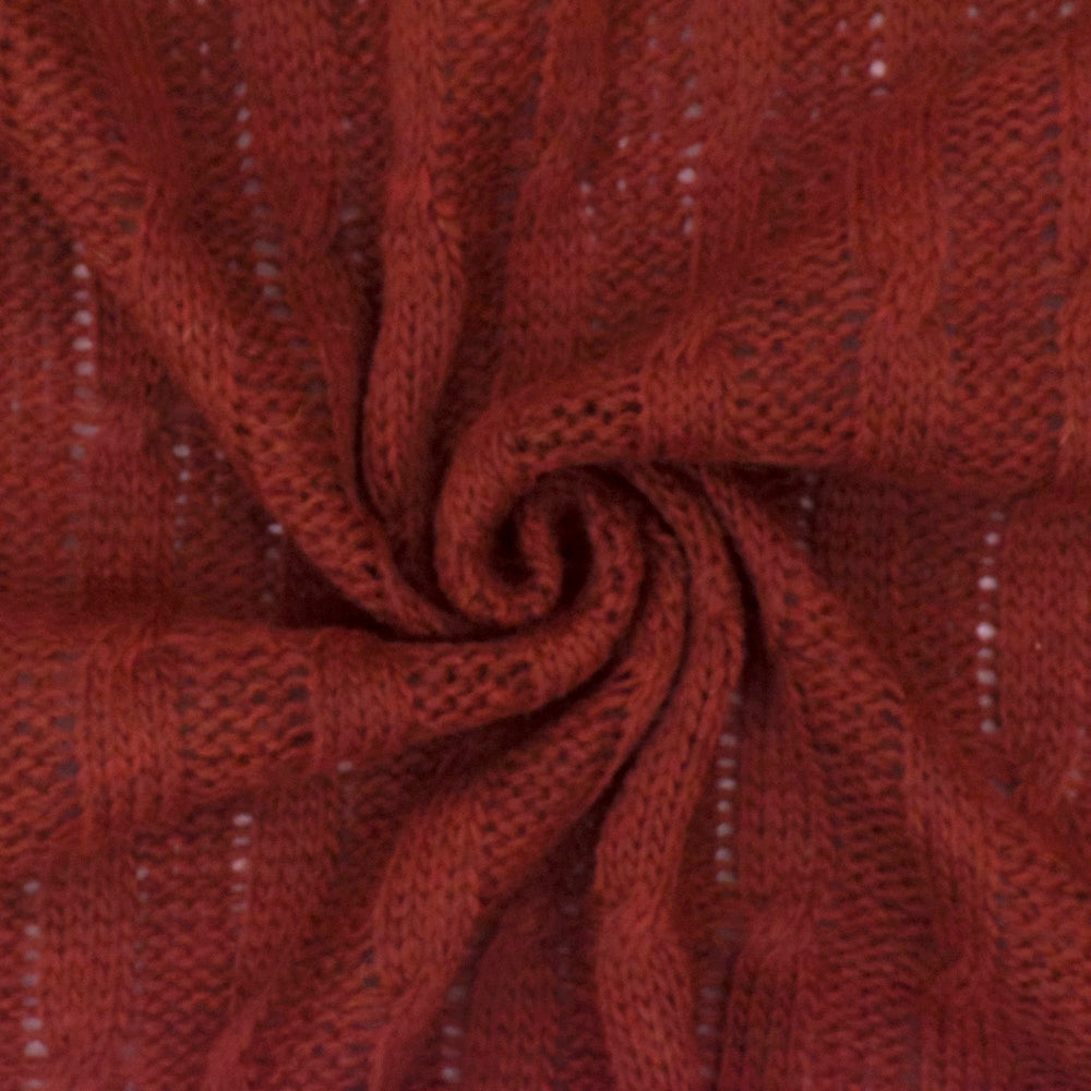 Winter Red Wool Blend Paisley Sweater Crochet Knit Fabric