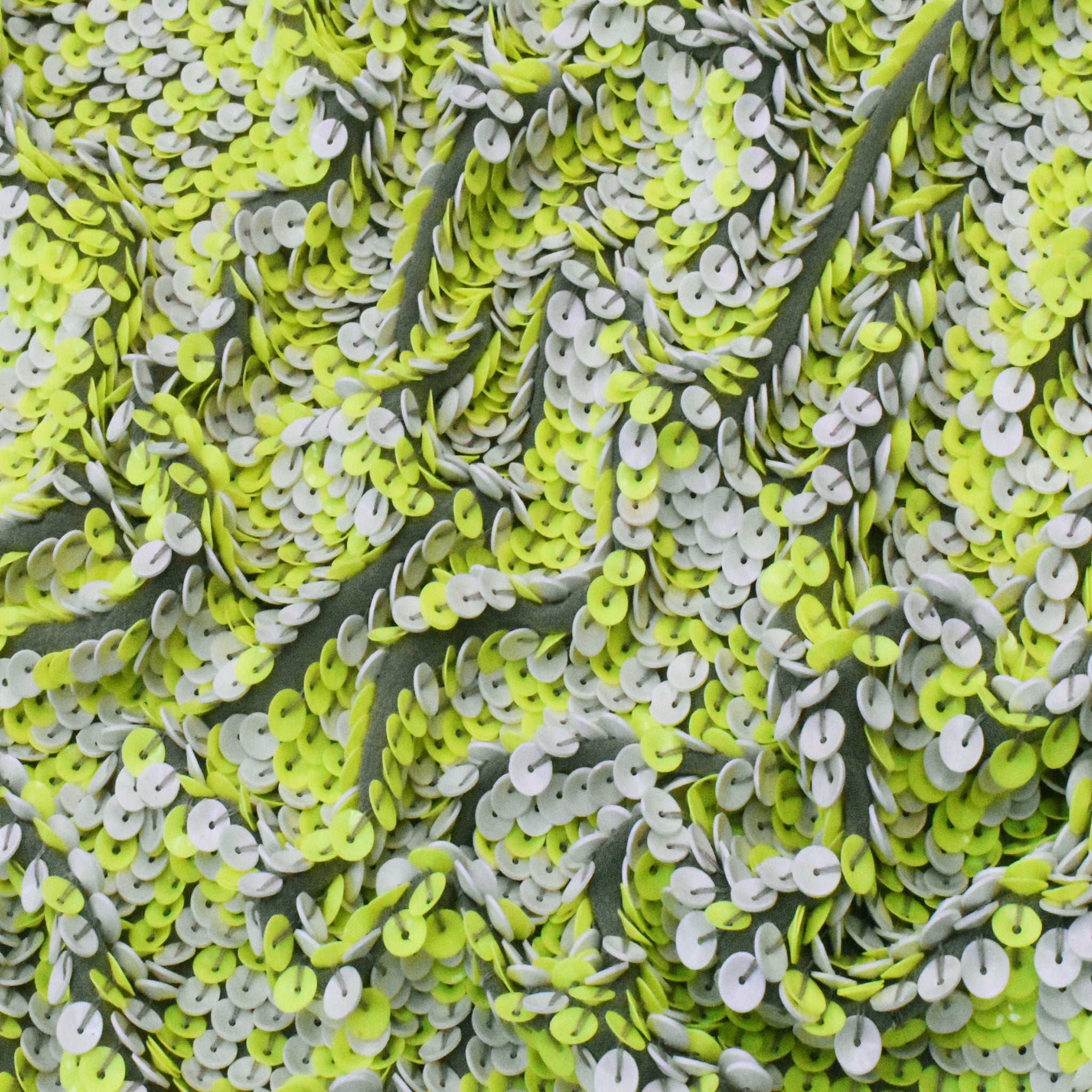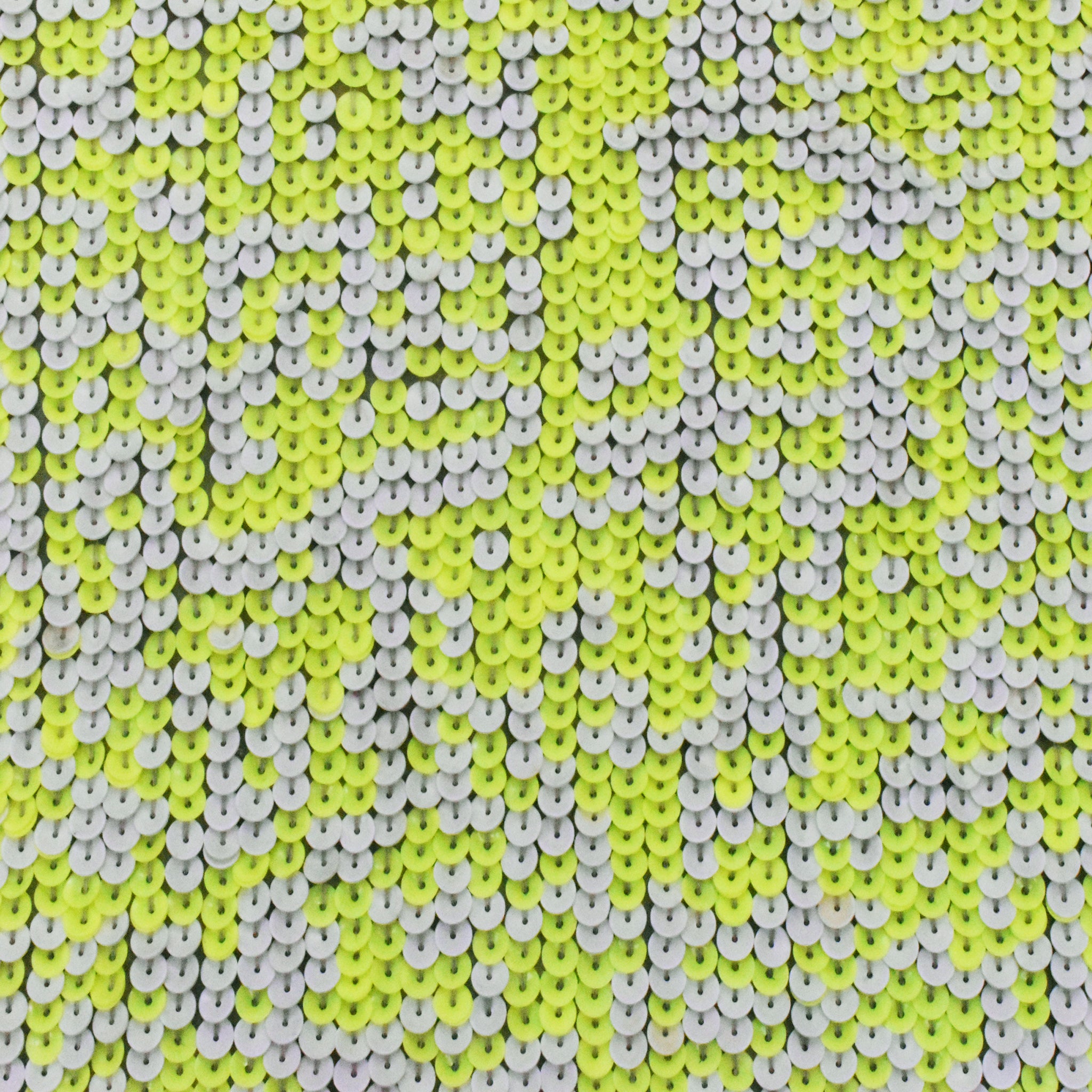 Neon Yellow-Ivory Sequined Silk Woven Fabric
