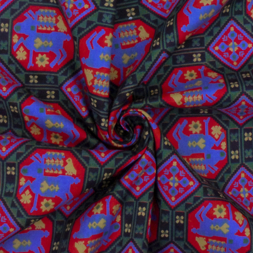 Red/Green/Multi Vintage 1950s Reindeer Print Shirting Fabric