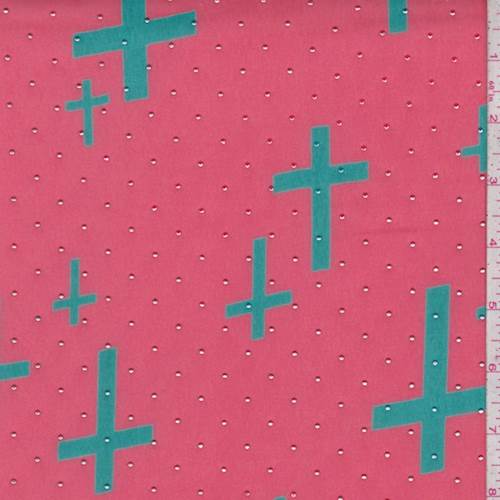Bright Coral/Teal Cross Chiffon Fabric