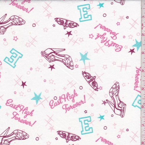 White/Mulberry High School Print Cotton Jersey Knit Fabric
