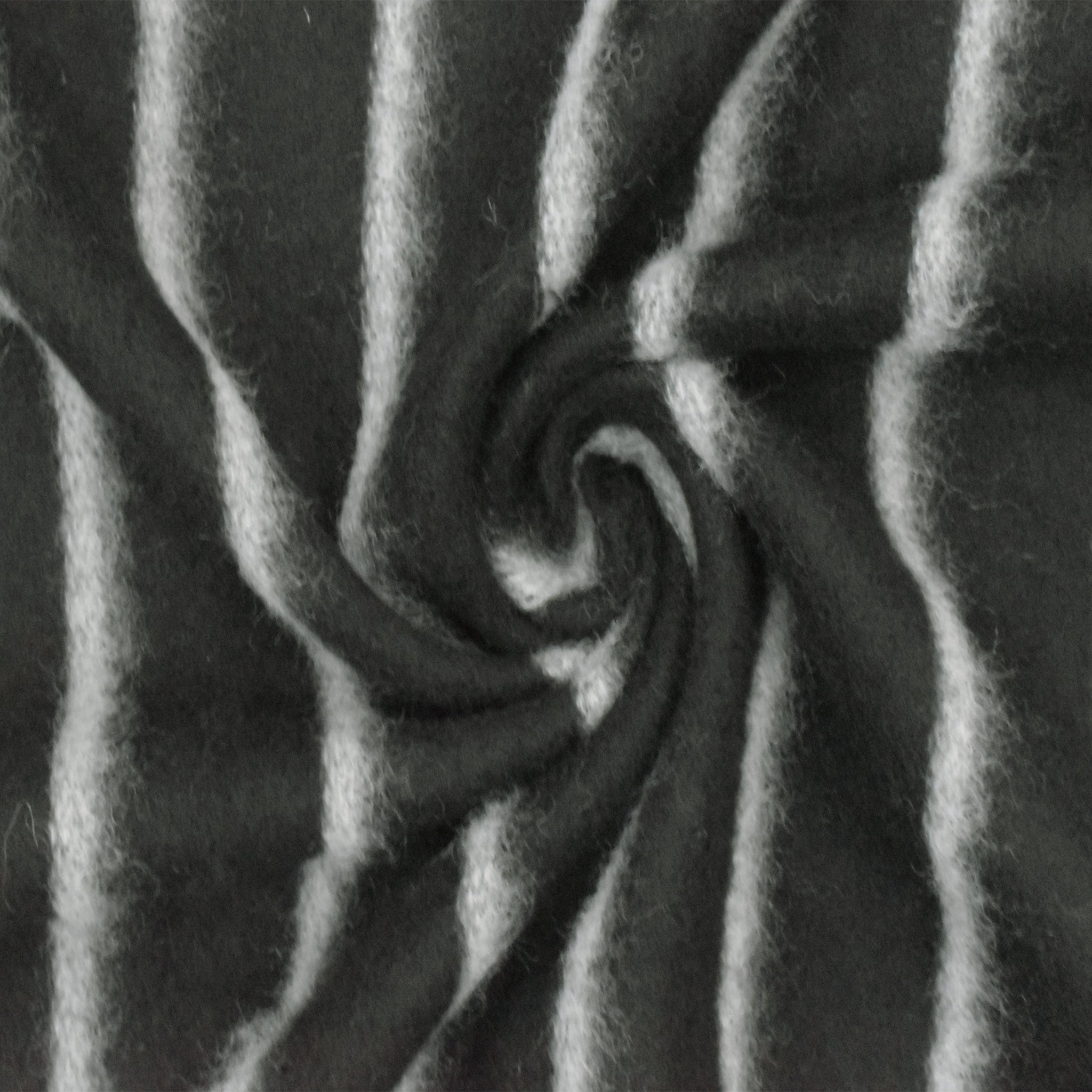Cat Black-White Stripe Stretch One Sided Fleece Knit Fabric