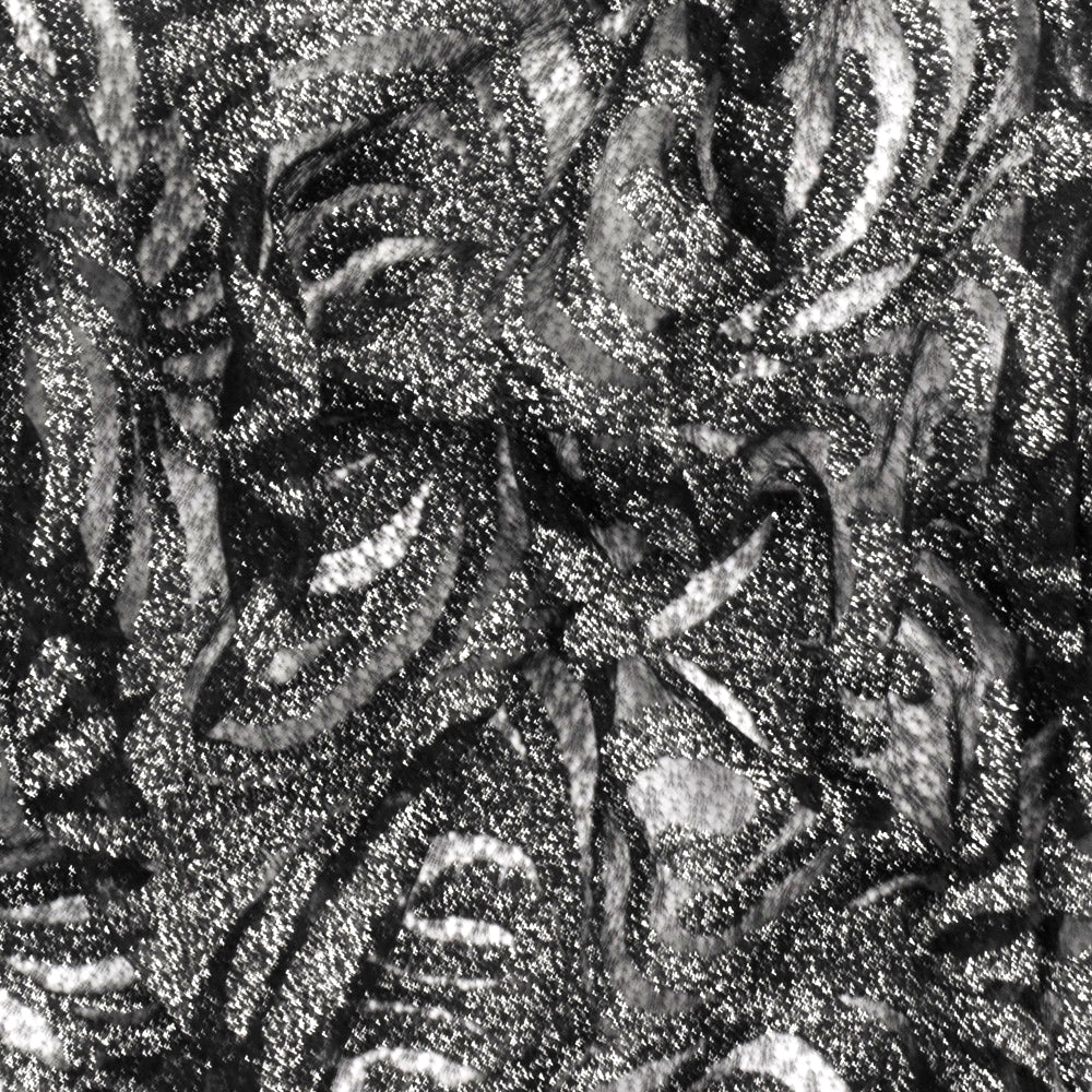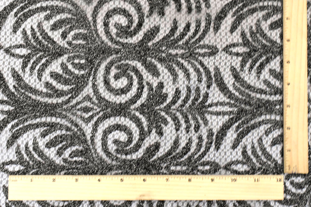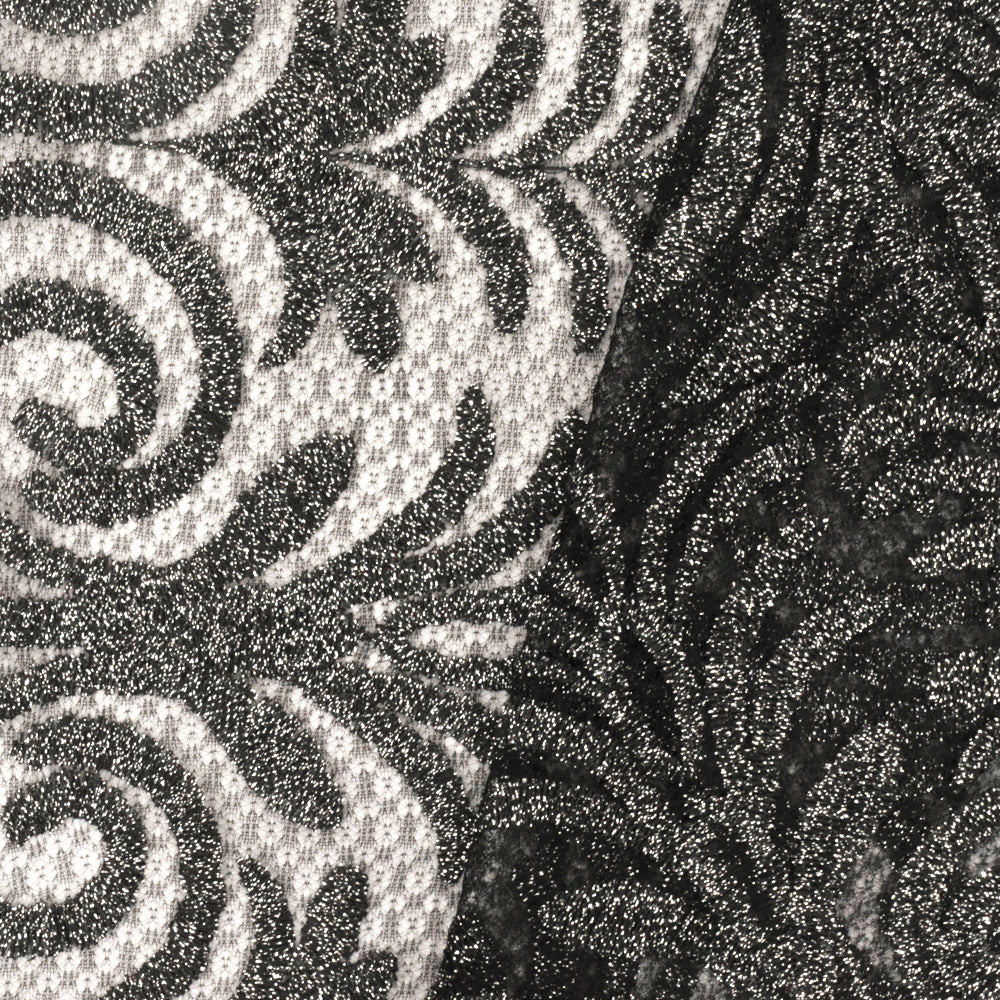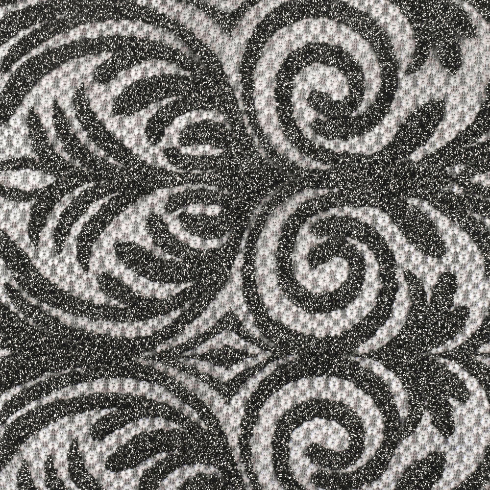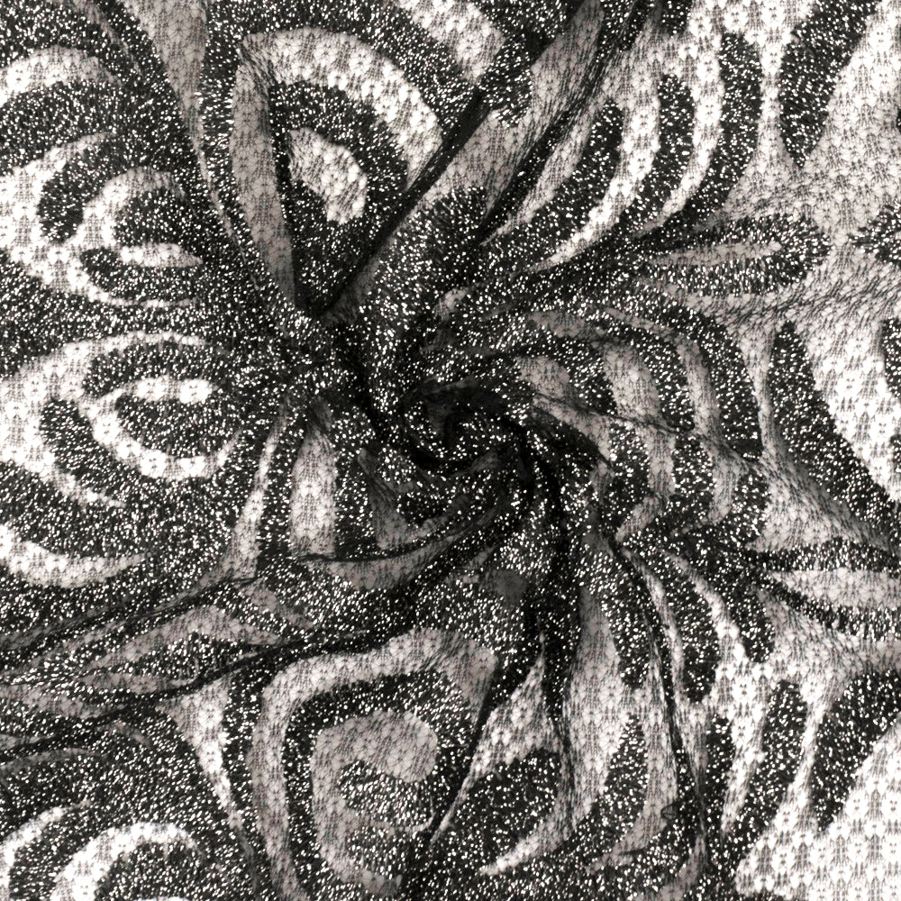 Classic Black-Metallic Silver Baroque Embroidered Stretch Lace Knit Fabric