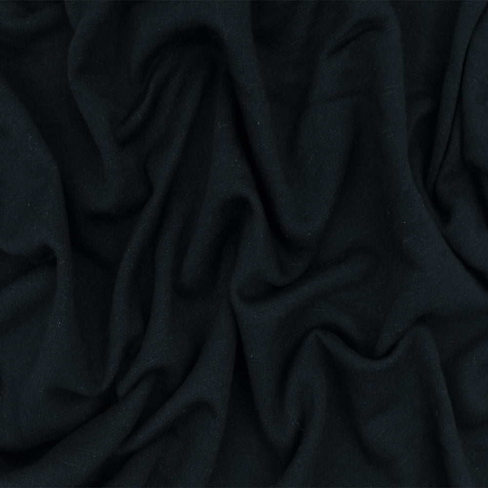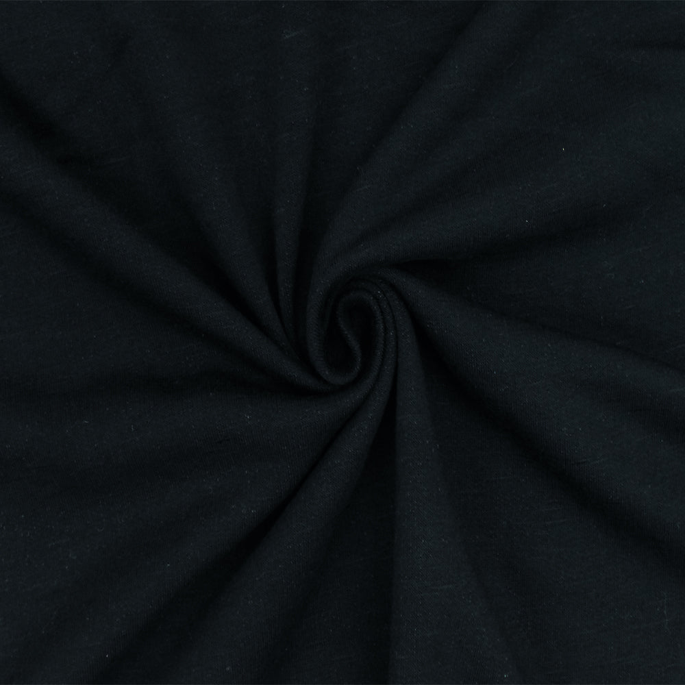 Cold Black-Gray Solid Stretch Brushed Terry Fleece Knit Fabric