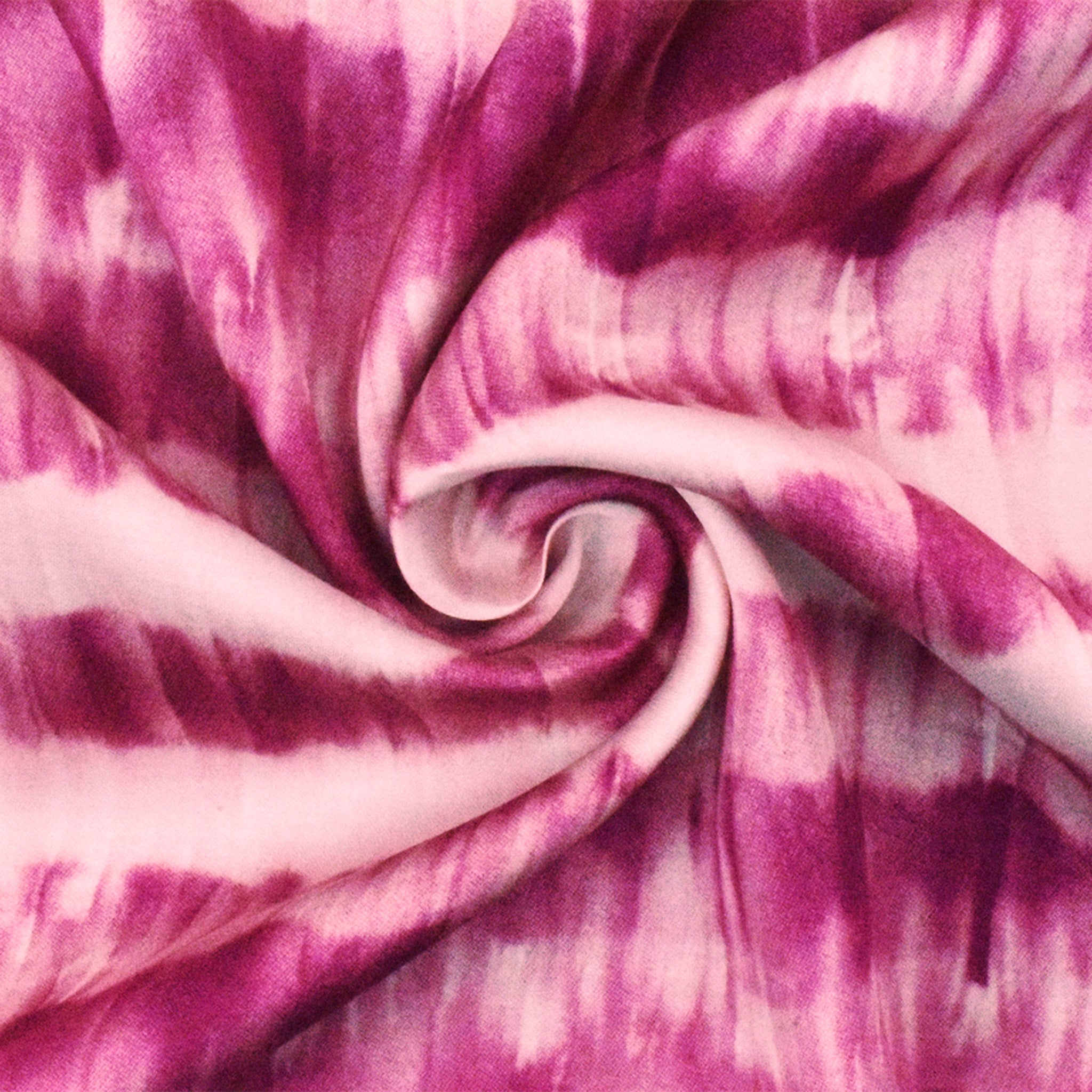 Fuchsia-Light Pink Famous Designer Viscose Tie Dyed Twill Satin Fabric