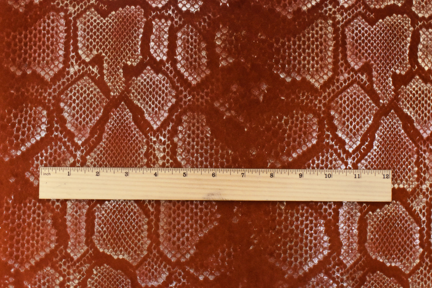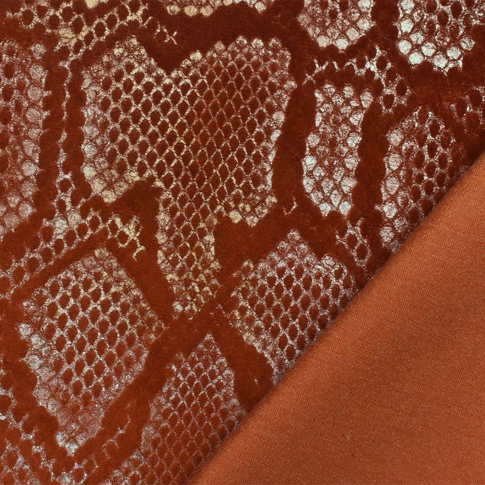 Rust Brown-Gold Snake Foil Print Poly Cotton Velvet Home Decorating Fabric