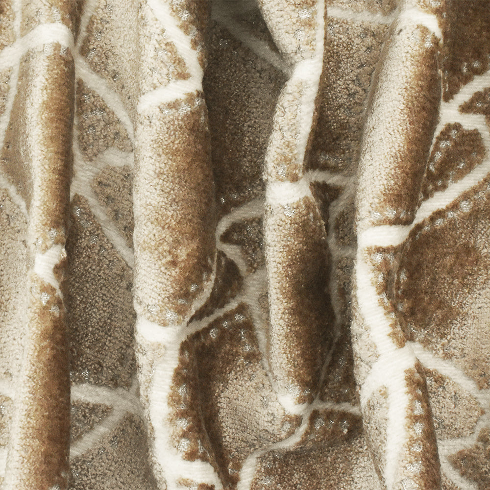 Brown-Beige-Silver Abstract Trellis Pile Velvet Jacquard Decorating Fabric