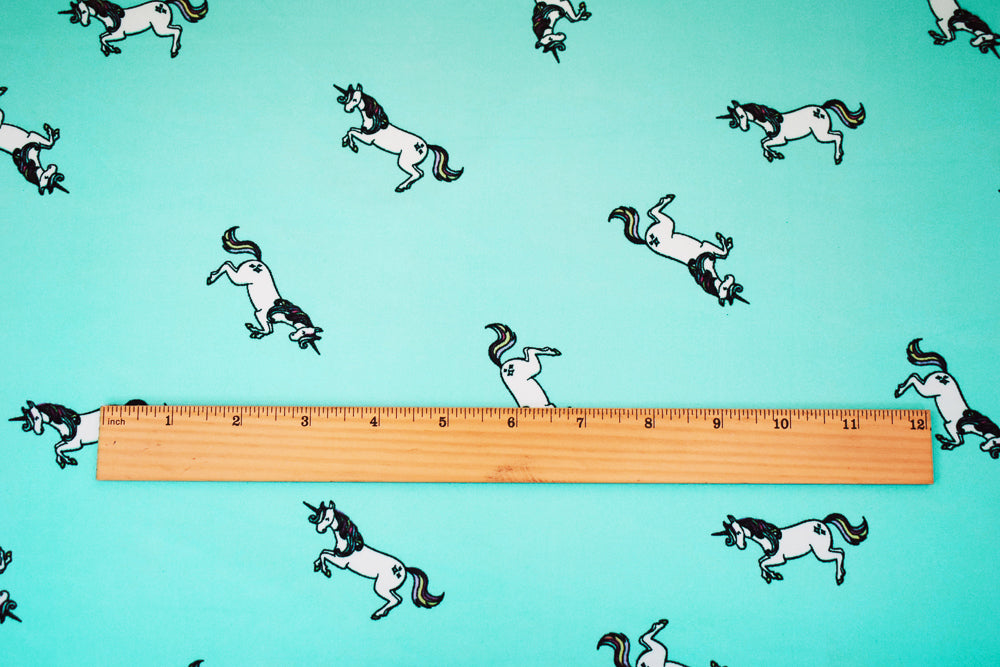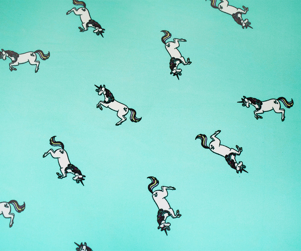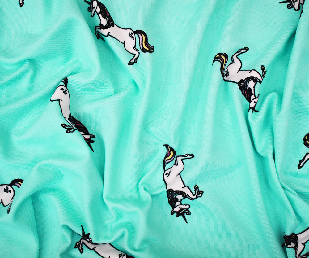 Aqua Teal-Multi Unicorn Printed Poly Spandex Super Double Brush ITY Fabric