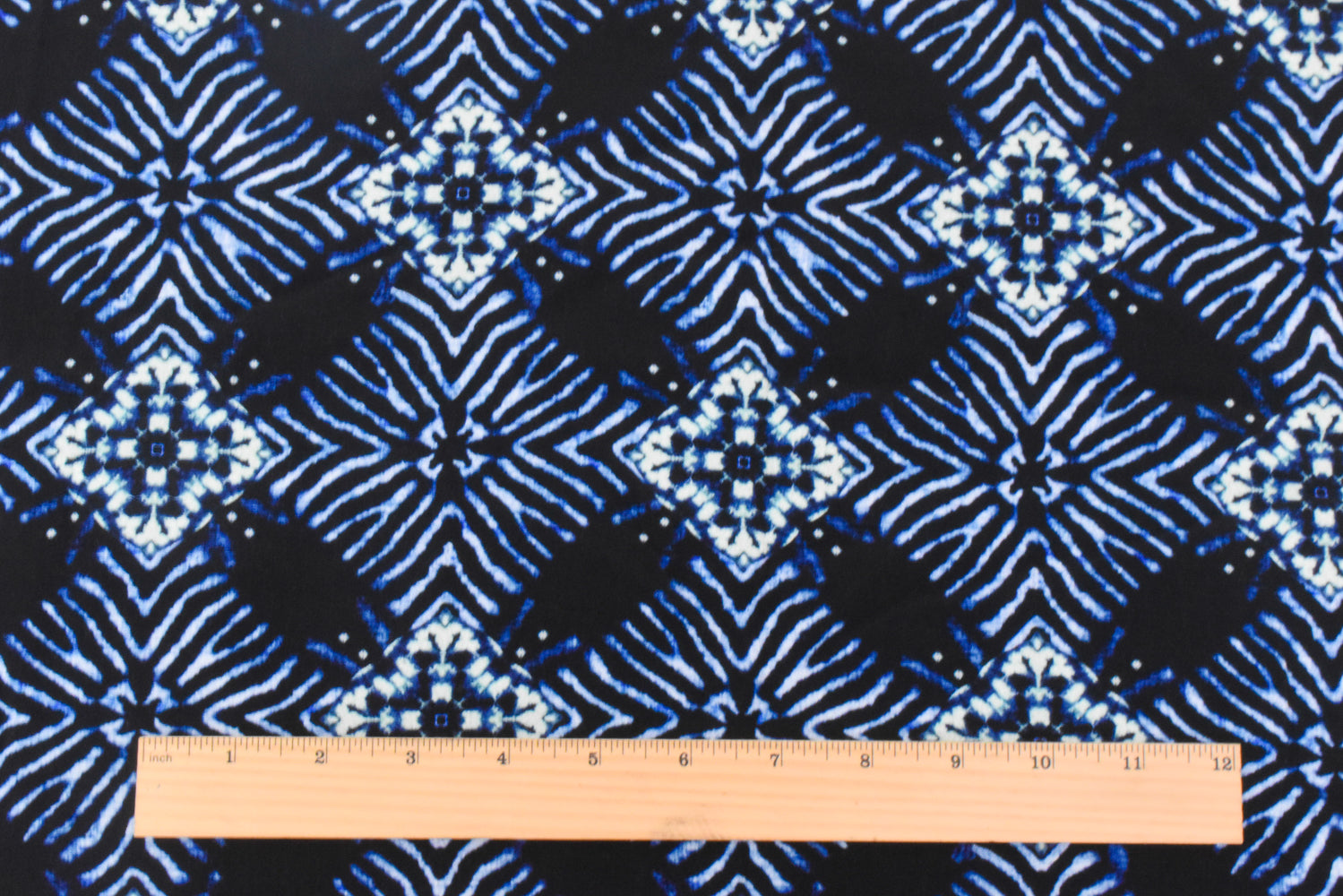 Black-Blue-Multi Famous Designer Diamond Print Viscose Crepe Faille Fabric