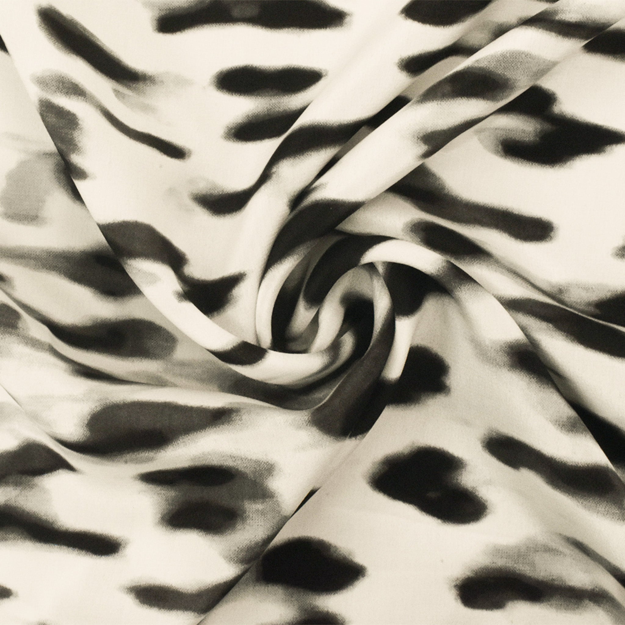 Black-Gray-White Famous Designer Silk Animal Printed Crepe De Chine Fabric