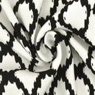 Black-White Famous Designer Ikat Ogee Printed Cotton Crepe Faille Fabric