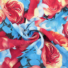 Blue-Red-Multi Floral Printed Rayon Crepe Faille Woven Fabric