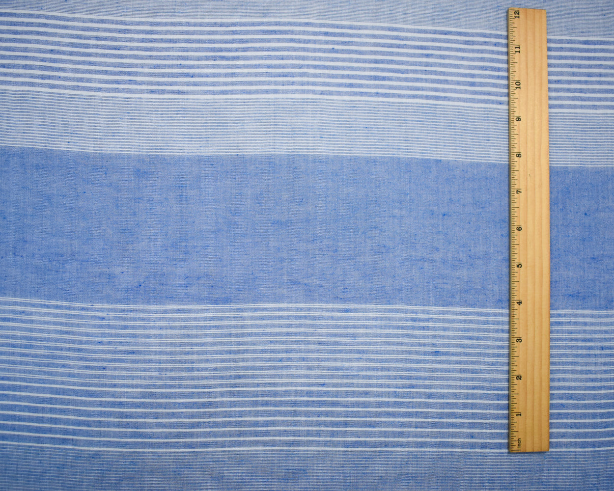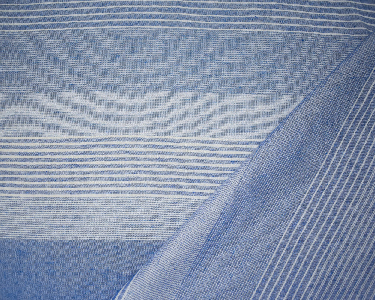 Blue-White Cotton Famous Maker Horizontal Stripe Shirting Woven Fabric