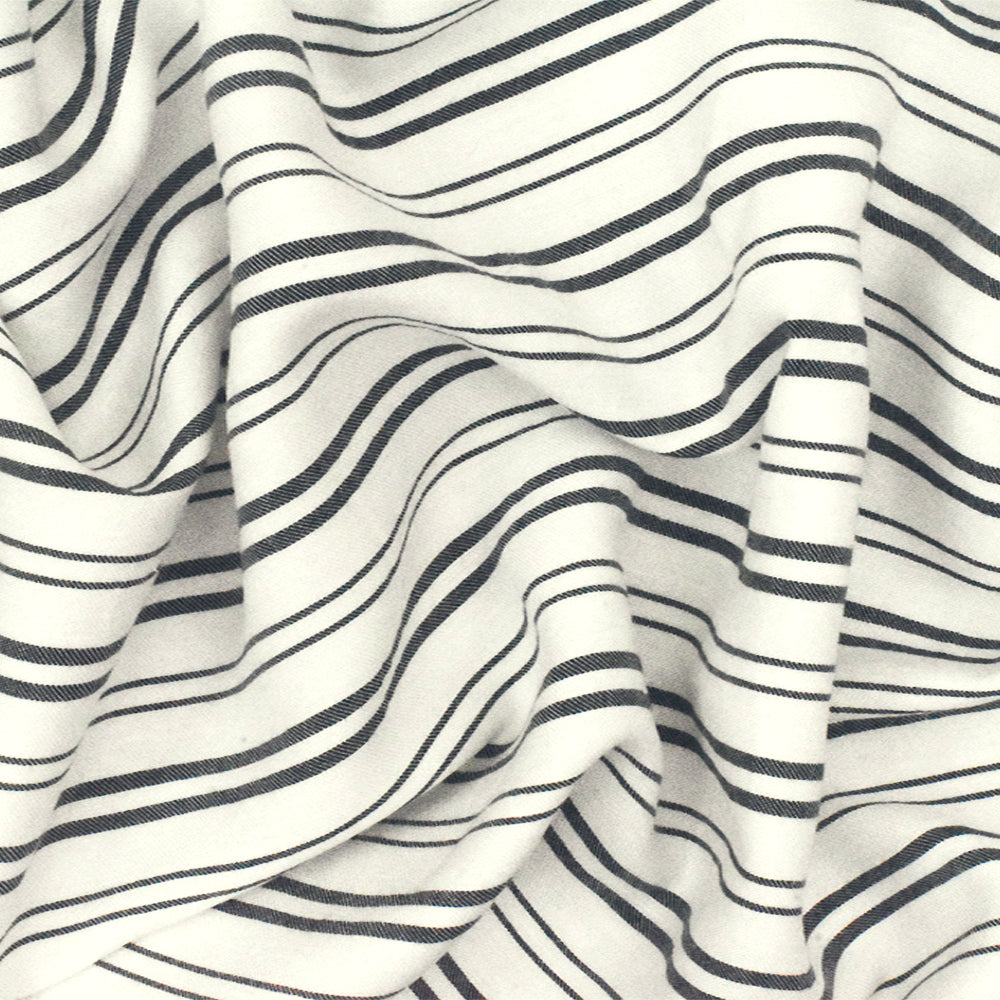 Cold Black-Ivory Famous Designer Stripe Rayon Challis Twill Woven Fabric