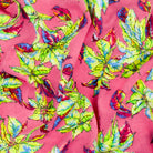 Kiss Pink-Yellow-Multi Leaves Printed Polyester Dobby Crepe Woven Fabric