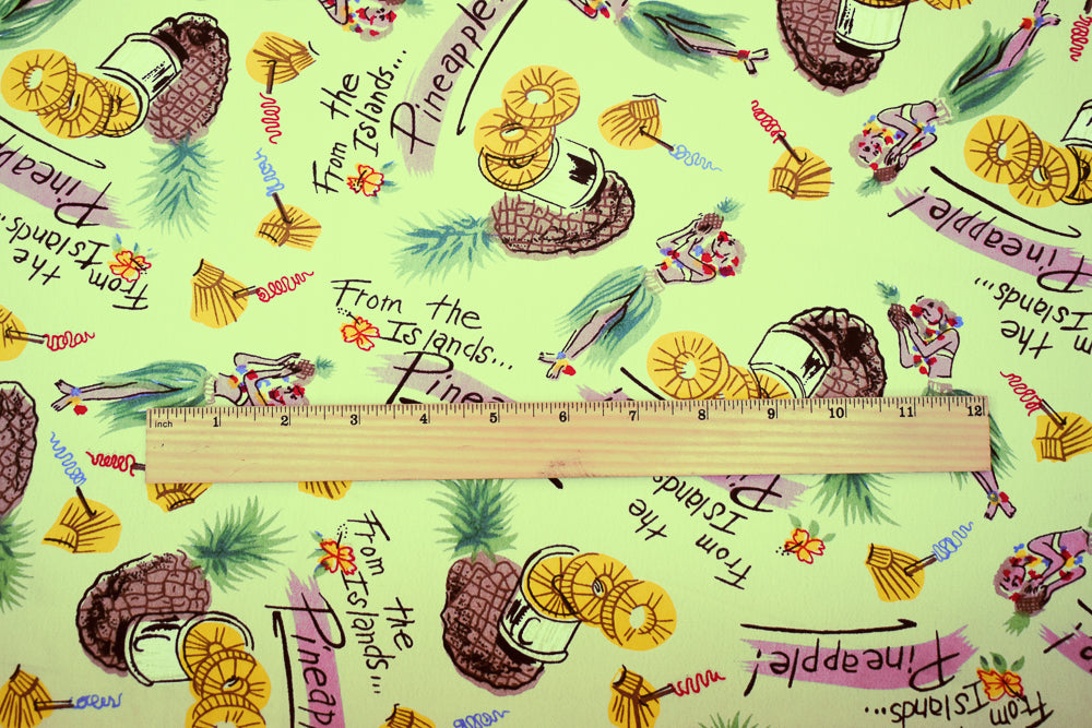 Light Green-Pink-Multi Hawaiian Theme Printed Rayon Crepe Faille Woven Fabric