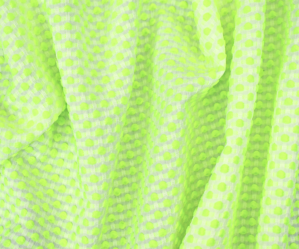 Neon Yellow-White Poly-Lycra Texture Dobby Jacquard Woven Fabric
