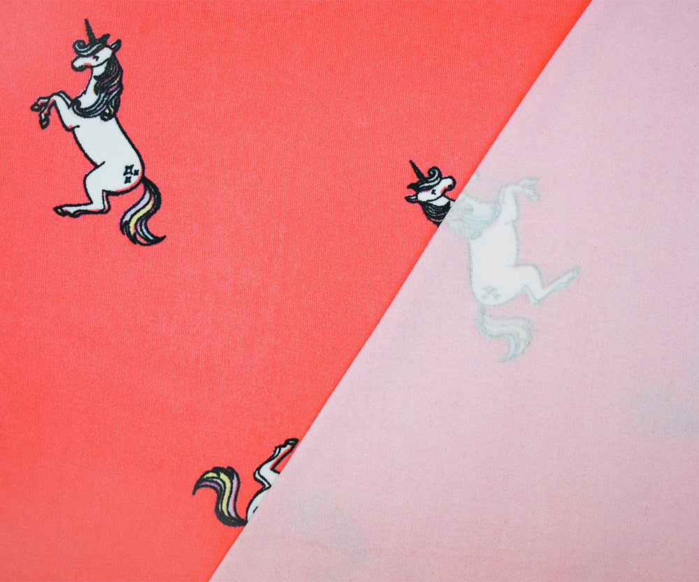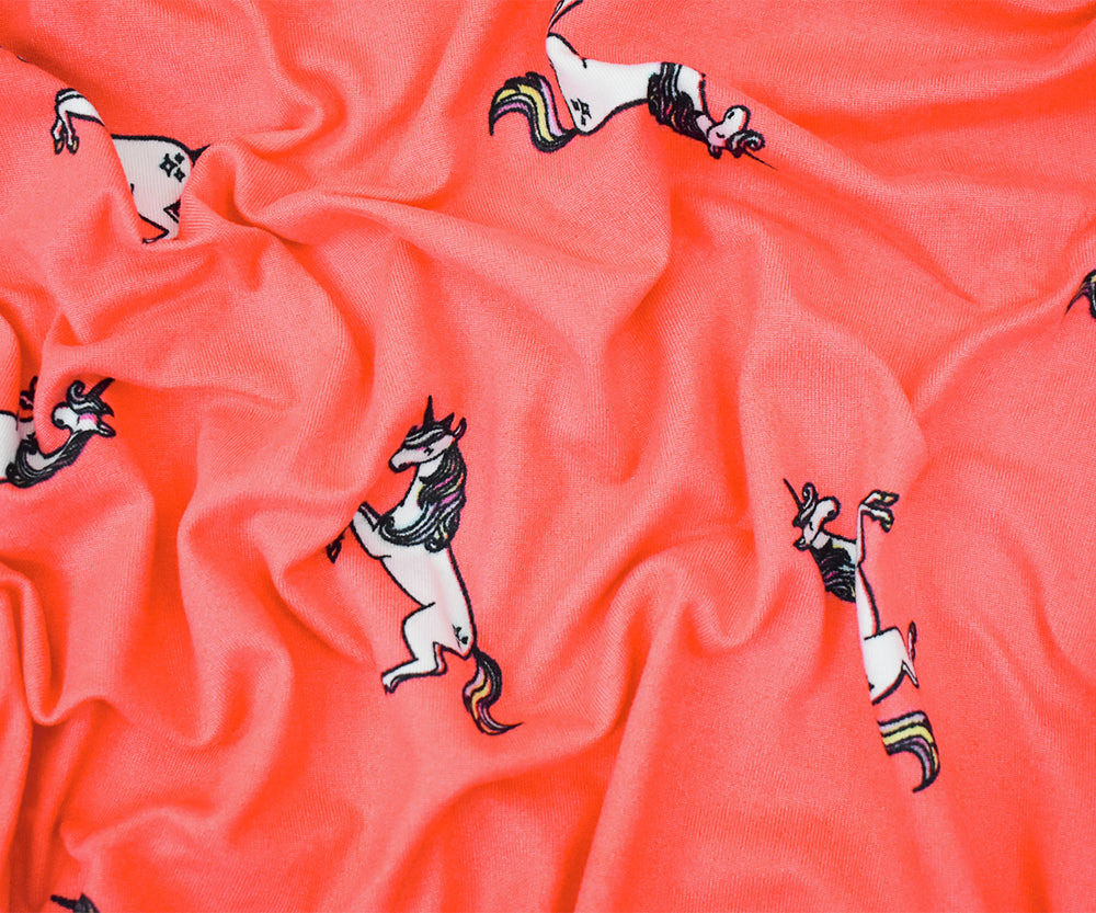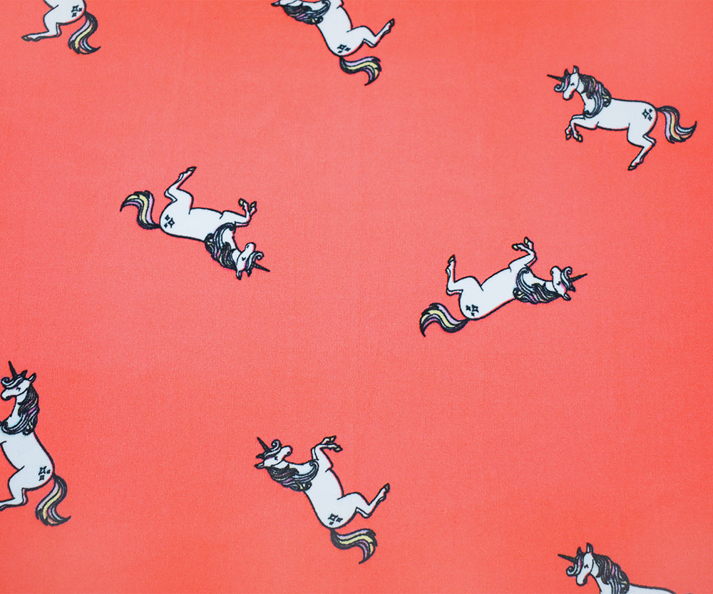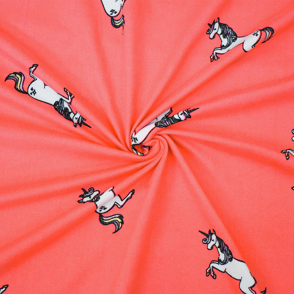 -Polyester stretch spandex super double brushed ITY knit fabric printed with unicorn motifs