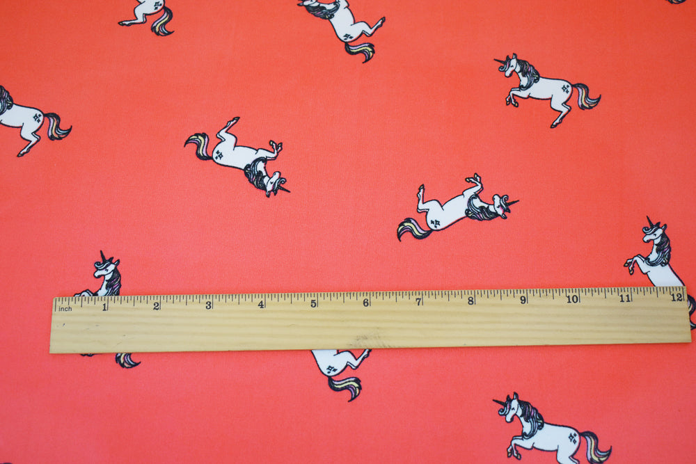 Orange-Multi Unicorn Printed Poly Spandex Super Double Brush ITY Fabric