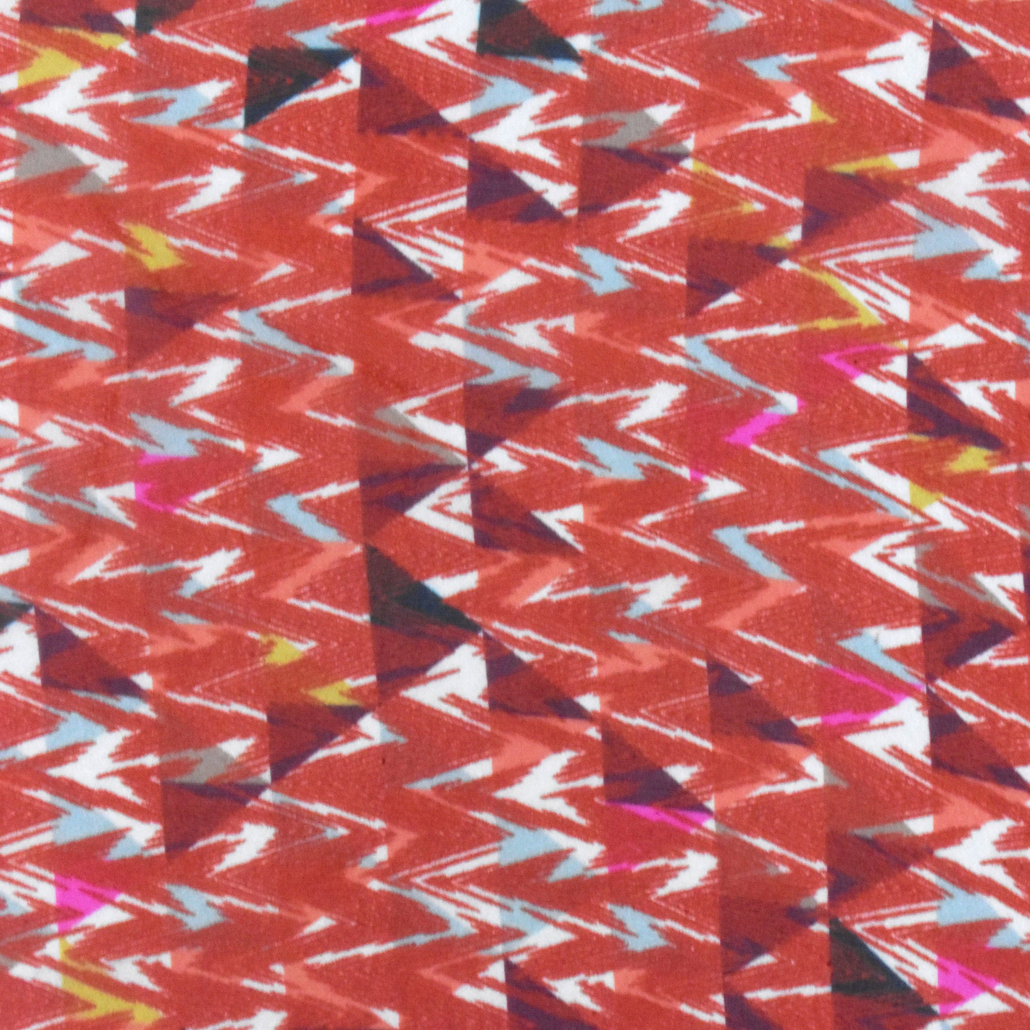 Red-Purple-Multi Abstract Triangle Printed Silk Chiffon Fabric