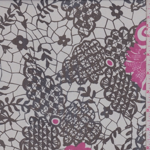 White/Fuschia Lace Print Silk Chiffon Fabric