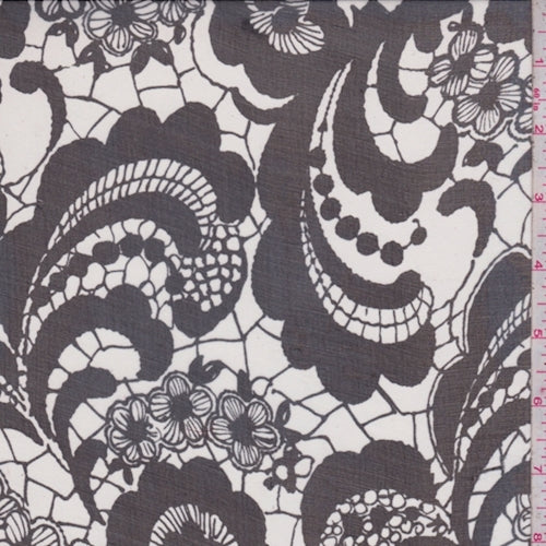 Pale Grey/Black Lace Print Silk Chiffon Fabric